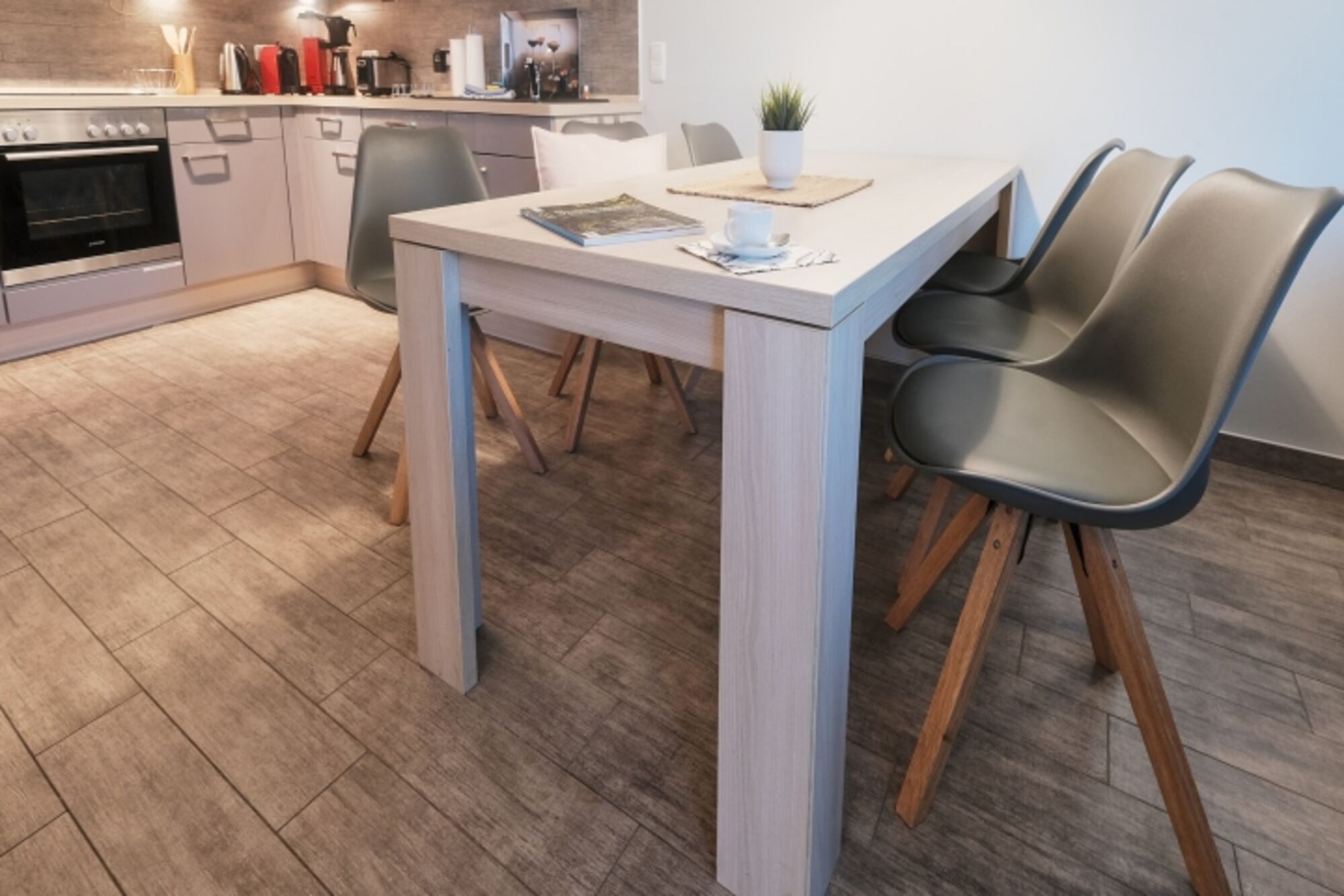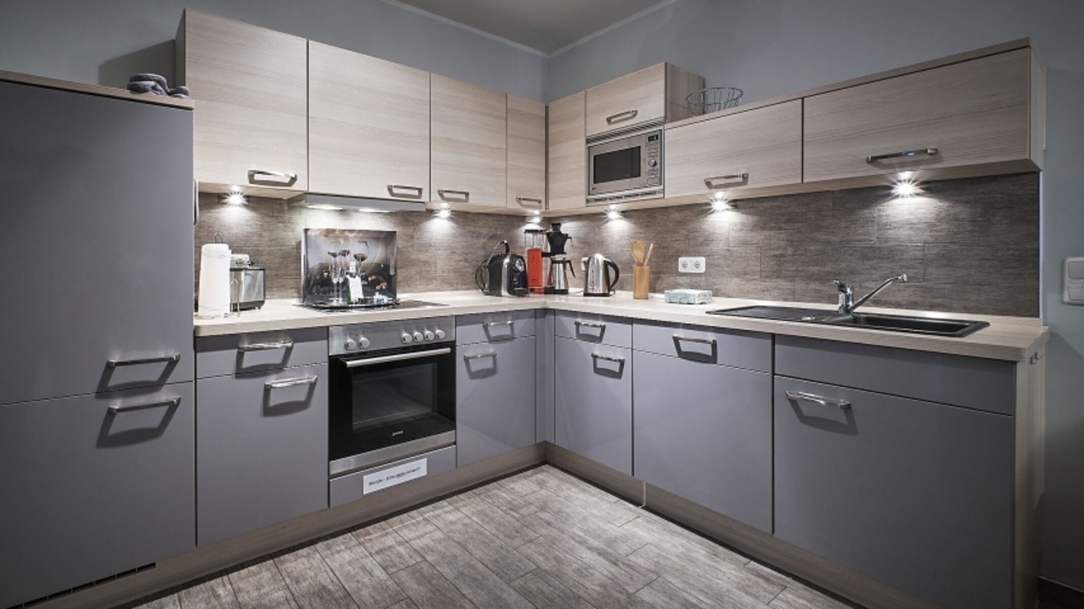 ✔︎ voll ausgestattete Gourmet-Küche mit Ofen, Mikrowelle, Kühl-/Gefrierschrank, Geschirrspülmaschine