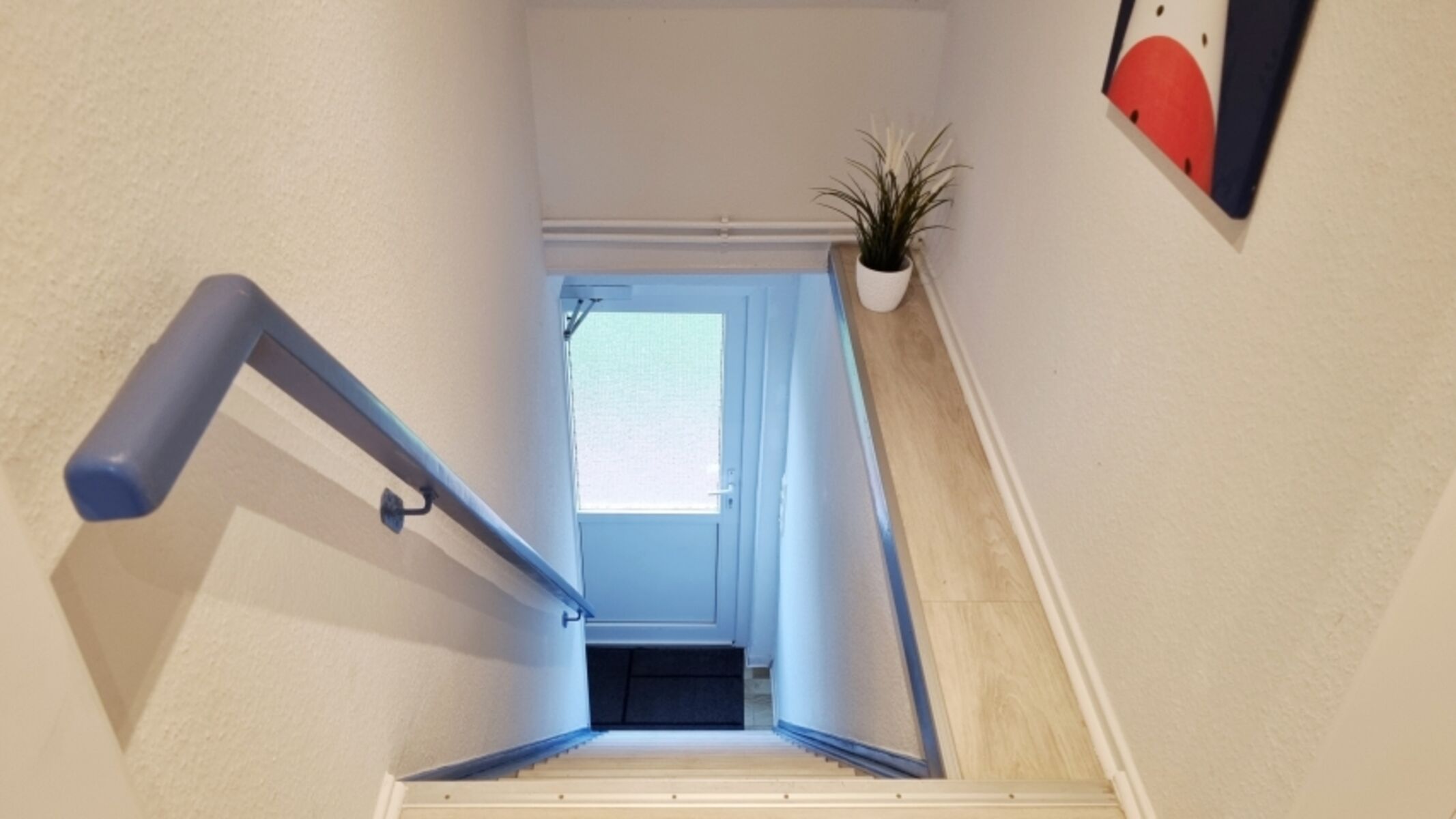 Die Ferienwohnung ist über eine relativ steile Treppe erreichbar und deswegen für manche Personen und Hunde schwierig zu begehen.