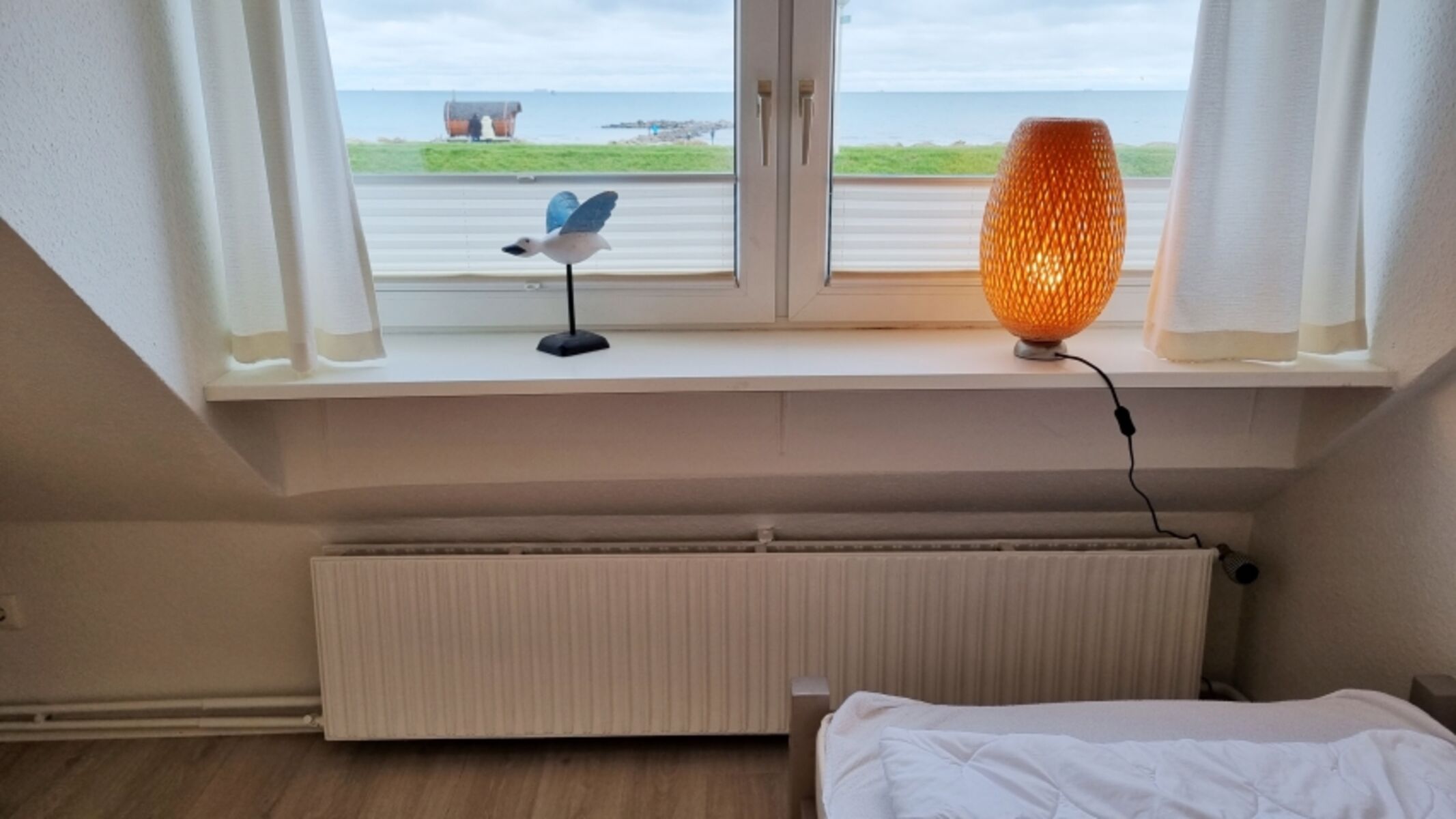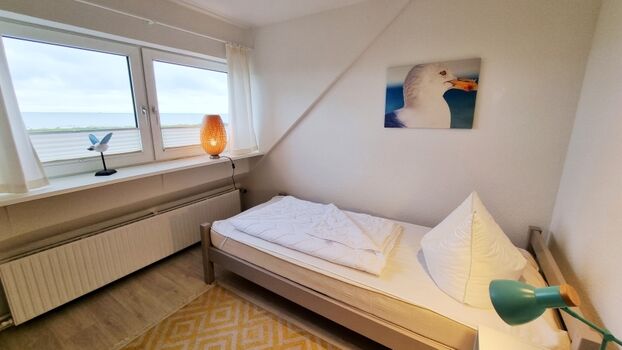 Schlafzimmer II: Einzelbett (90x200cm) / Schrank / Meerblick / Plissees