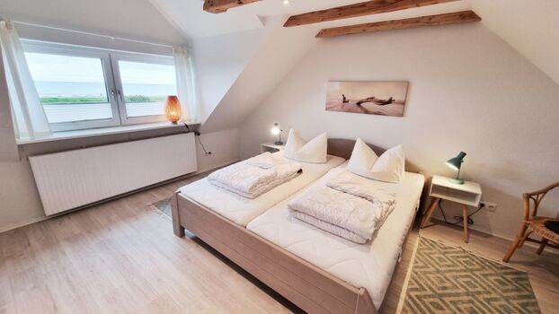 Schlafzimmer I: Doppelbett (180x200cm) / Einbauschrank / Fernseher / Meerblick / Plissees