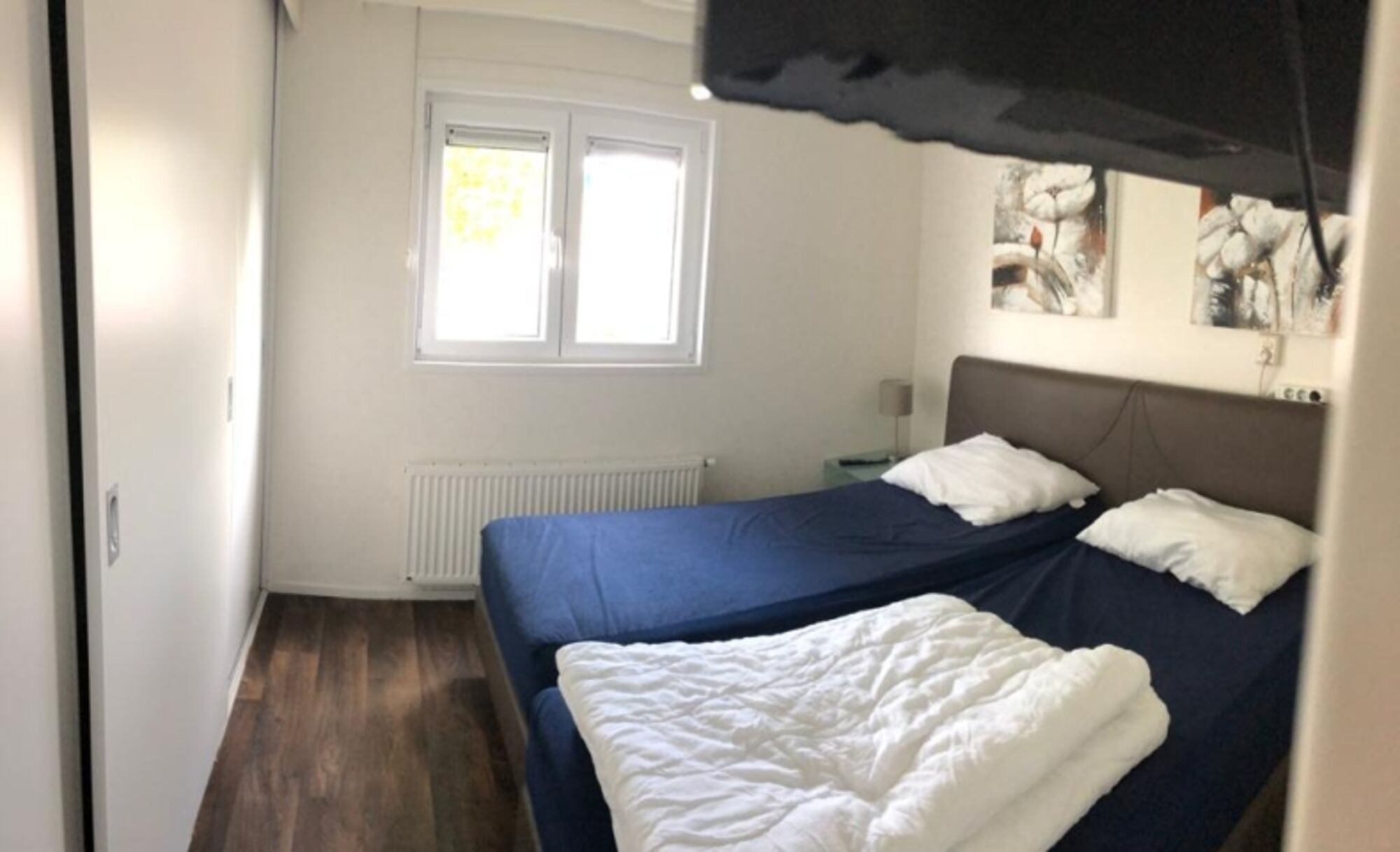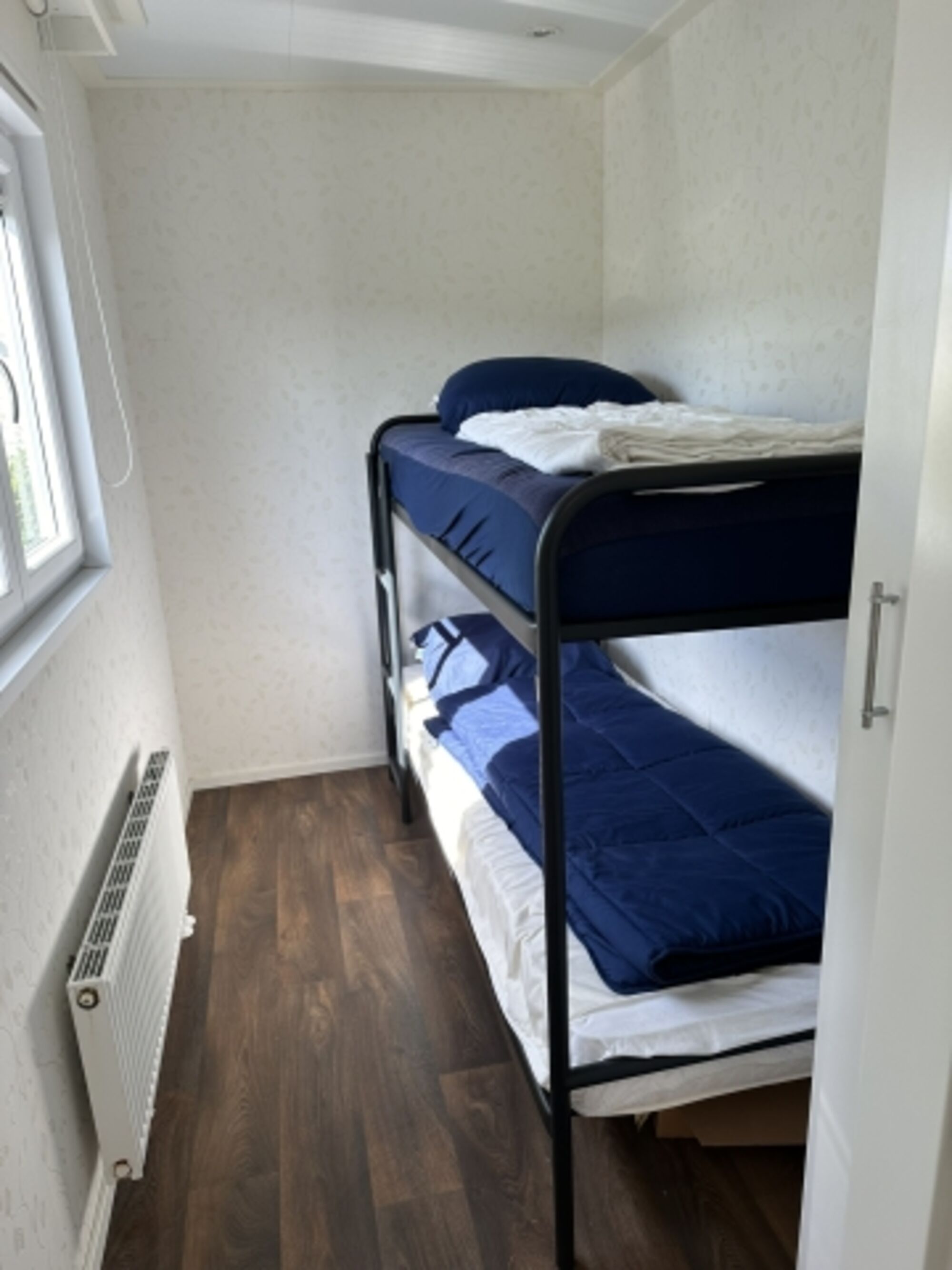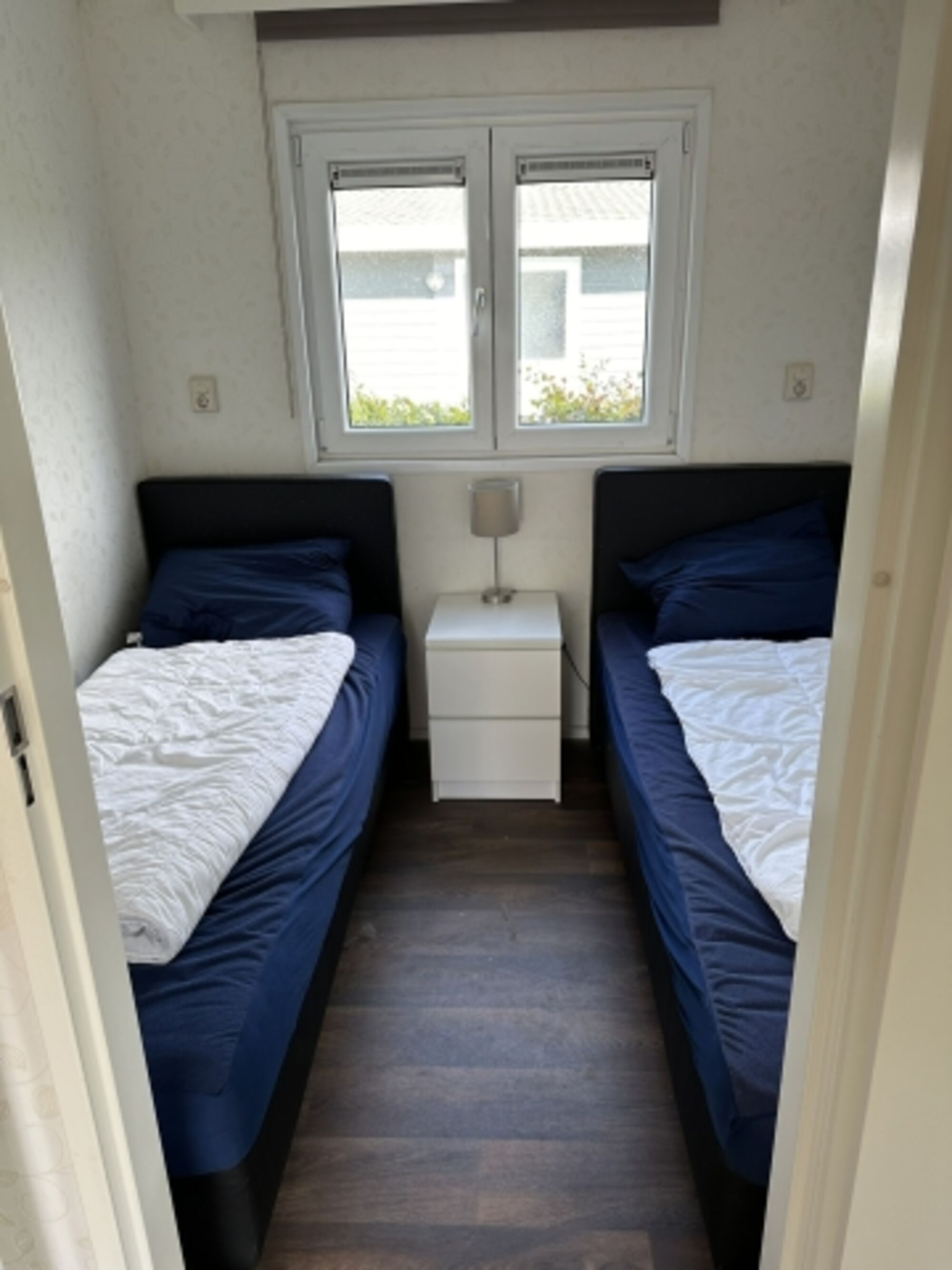 Unser Ferienhaus hat 3 Schlafzimmer, eines mit Doppelbett inklusive TV, eines mit zwei einzelnen Betten und das dritte Zimmer hat ein Etagenbett.