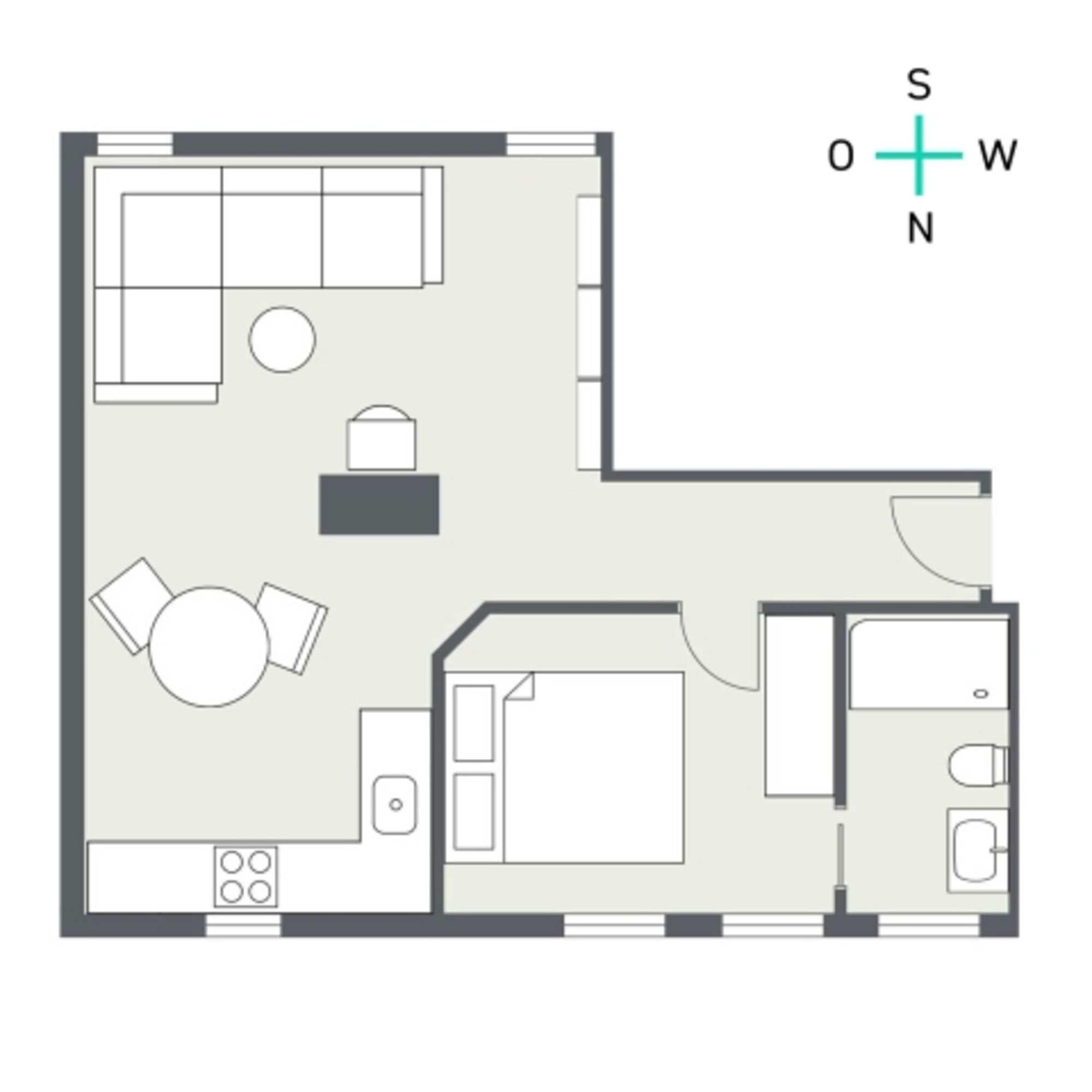 | Wohnfläche gesamt: | 45 m² |