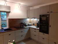 Großzügige Räume, eine tolle Küche mit einem BORA-Herd, ein Badezimmer mit zwei Waschbecken und Regendusche, ein Gäste-WC, ein 2x2m großes Boxspringbett, ein zusätzlicher Fernseher im Schlafzimmer und eine 4x6m große Terrasse mit Strandkorb laden ein zum Genießen. Das Grundstück ist umzäunt, so dass Ihr Hund sich gefahrlos draußen aufhalten kann. Eine große private Streuobstwiese (6000qm) , die umzäunt ist, kann sehr gern als Auslauf von Ihrem Hund genutzt werden. ( ca.20m Entfernung)