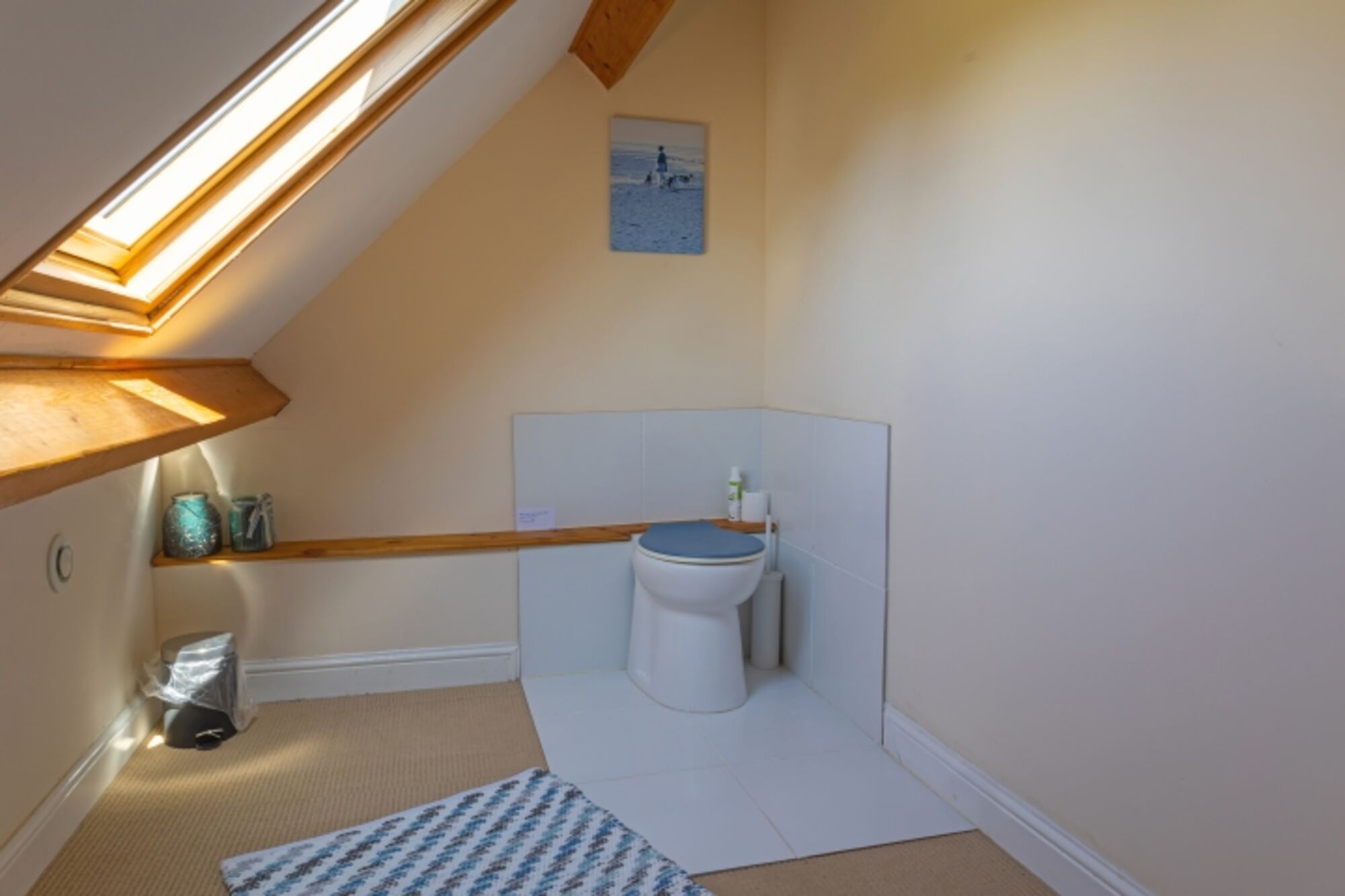 Oben befinden sich 2 Schlafzimmer sowie ein WC und ein Hundesofa.