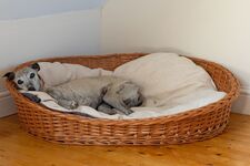 Es stehen zahlreiche Hundenäpfe und Hundebetten zur Verfügung, eigene Decken sind bitte mitzubringen. Ebenso ist eine Kühltruhe für BARF vorhanden.