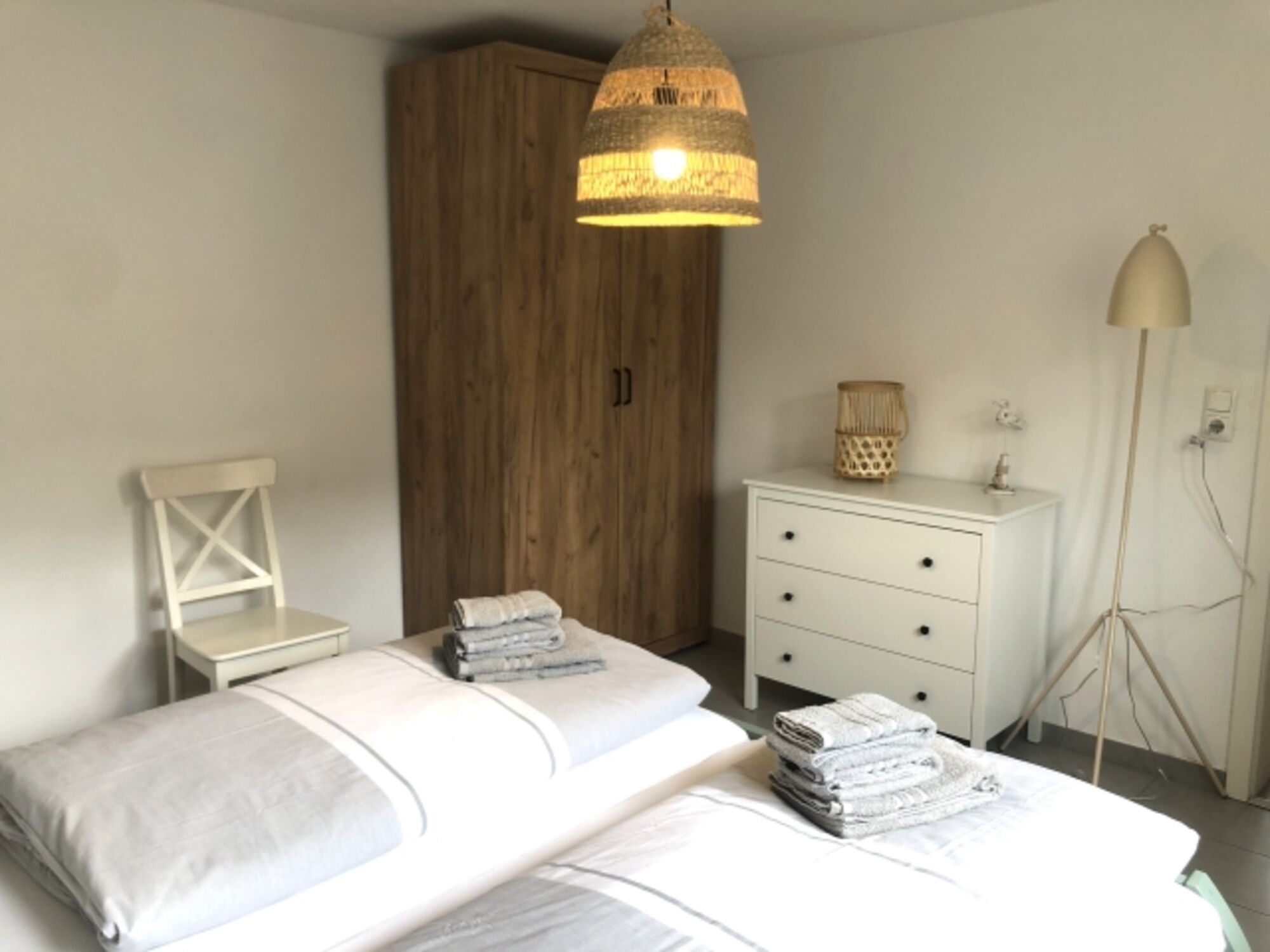Ein Wäscheset (bereits bezogene Betten, ein Duschtuch, zwei Handtücher und ein Duschvorleger) kann für 20€ pro Gast hinzugebucht werden.