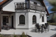 Die Ferienwohnung 3 bietet mit 120 m² Platz für bis zu 10 Personen. Der offene Wohnbereich ist ausgestattet mit einem großen Flat-TV und einem großen modernen Sofa, dass zum Schlafsofa umfunktioniert werden kann (Aufbettung für die 9 & 10 Person). Außerdem finden Sie dort eine voll ausgestattete Küchenzeile mit Essplatz für bis zu 10 Personen. Über den Wohnbereich kommen Sie auch auf die große Terrasse auf der es sich herrlich frühstücken lässt. Es gibt drei Schlafzimmer mit jeweils einem Doppelbett und einem großen Kleiderschrank. Das Schlafzimmer 2 hat außerdem noch ein Aufbettungszimmer (nicht getrennt durch eine Tür) mit einem Hemnesbett( Aufbettung 7 & 8 Person) zum ausziehen. Hier gibt es auch eine kleine Terrasse mit Sitzgelegenheiten.
