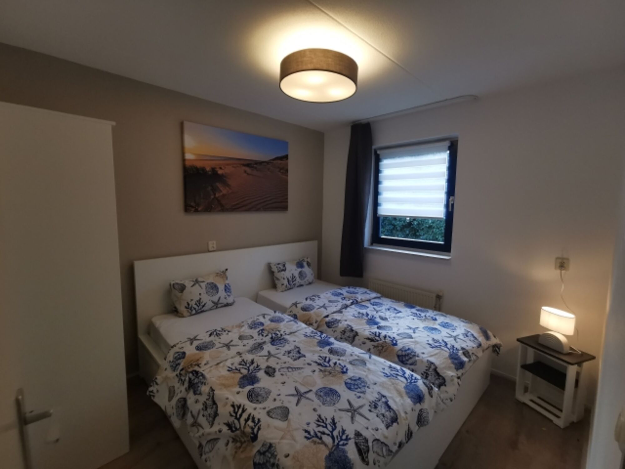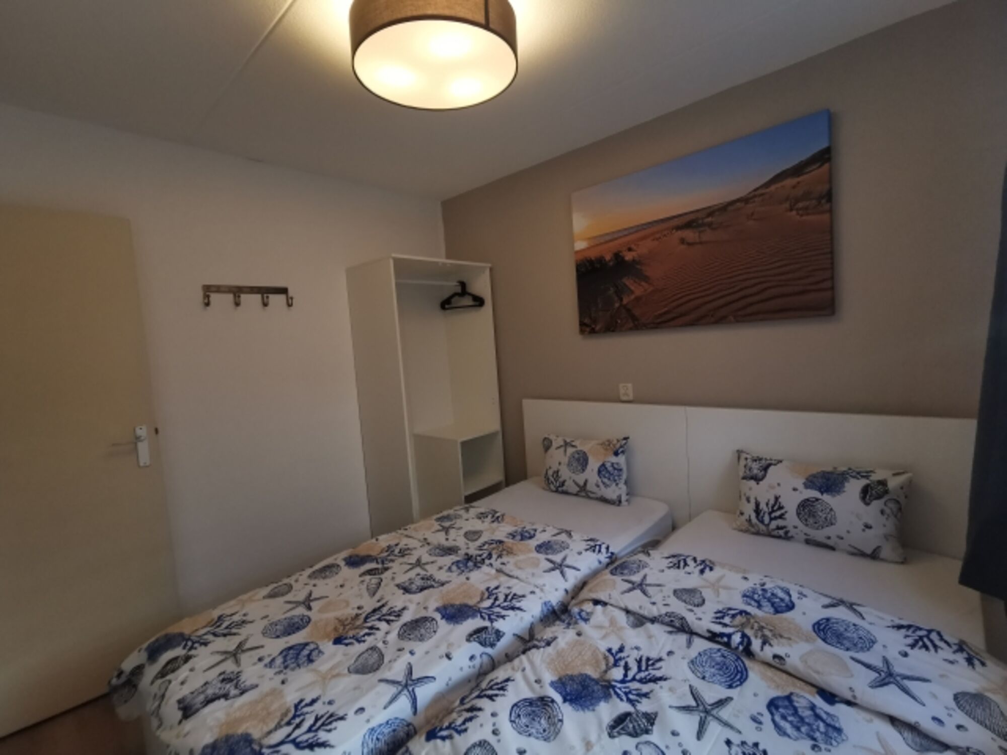 Das zweite Schlafzimmer umfasst zwei neue Einzelbetten 90 x 200 cm und einen Kleiderschrank. Insgesamt bietet es bis zu 4 Personen ausreichend Platz und Rückzugsmöglichkeiten.
