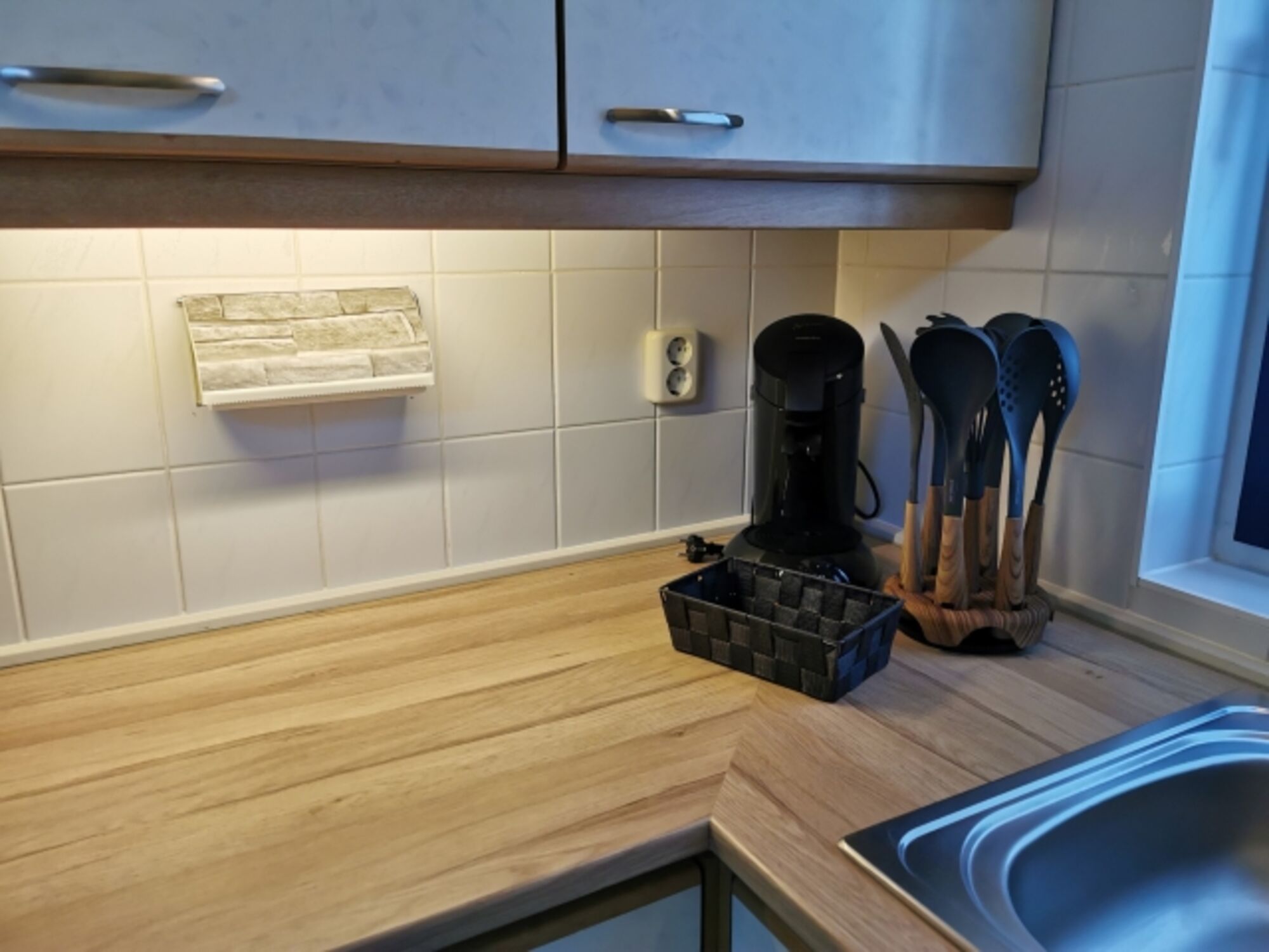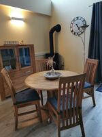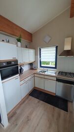 In der modernen Einbauküche macht das gemeinsame Kochen Spaß. Sie verfügt über ein Gaskochfeld, Backofen-Mikrowelle, Toaster, Filterkaffeemaschine, Senseo Kaffeemaschine, einen Kühlschrank mit Gefrierfach sowie über eine Geschirrspülmaschine. Geschirr und Besteck ist reichlich vorhanden.