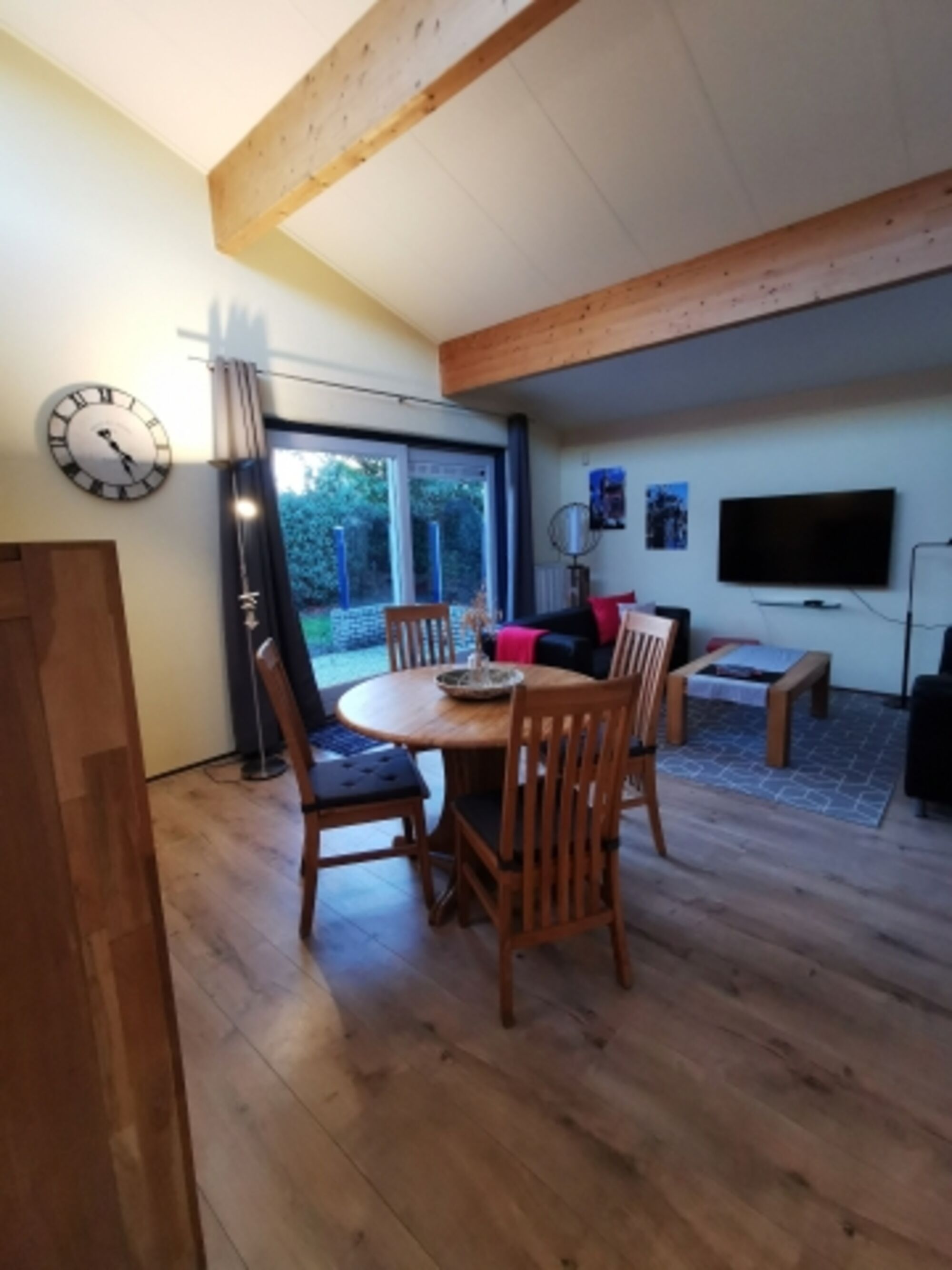 Der lichtdurchflutete Wohnbereich, mit zwei Ledercouchs und einem 55 Zoll Smart TV (SAT TV mit deutschen Programmen) lädt zum Entspannen ein. Die Gas-Zentralheizung lässt sich zu jeder Jahreszeit individuell steuern. Zusätzlich erzeugt der Holzkamin in der kühleren Jahreszeit eine wohltuende Atmosphäre.