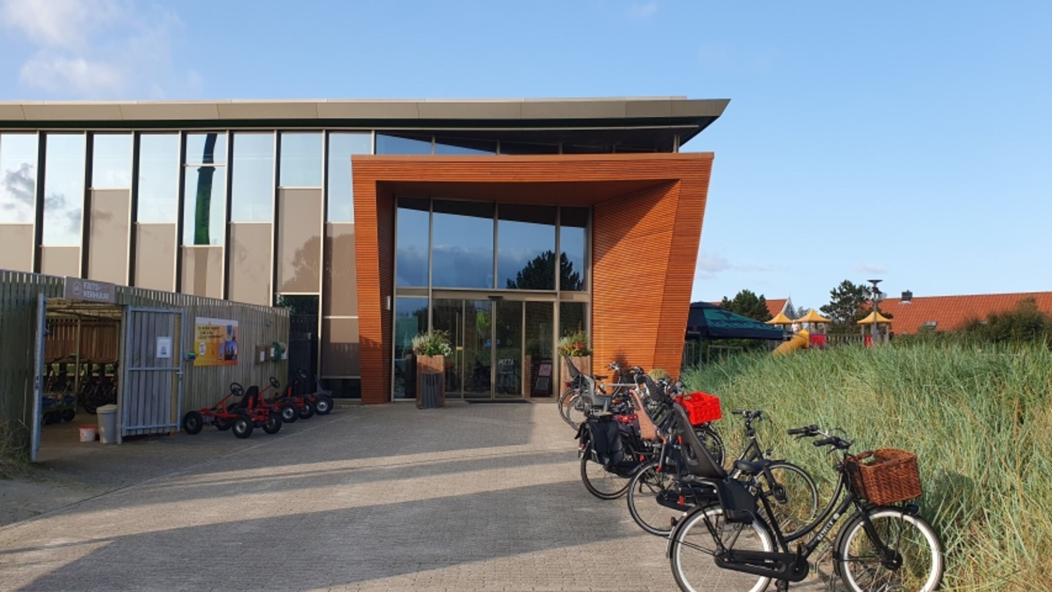Der äußerst gepflegte, ruhige und weitläufige Ferienpark liegt in den Blumenfeldern hinter den Dünen und verfügt über zahlreiche Freizeiteinrichtungen für die ganze Familie und dem vierbeinigen Begleiter (teilweise gegen Gebühr):