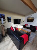 TV-Sat, SMART-TV, HDTV Flachbildschirm, Kaminofen, 3er-Sofa
