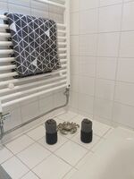 Das geräumige Bad mit einem Handtuchheizkörper verfügt über eine Dusche und in der kalten Jahreszeit können Sie ein warmes Schaumbad in der Badewanne genießen. Im großzügigen Waschbeckenunterschrank liegt selbstverständlich für Sie ein Fön bereit. Das WC ist separat und mit einem kleinen Waschbecken versehen.