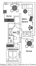 Wohnung 2 liegt im Erdgeschoß und hat eine Grundfläche von 45 m².
