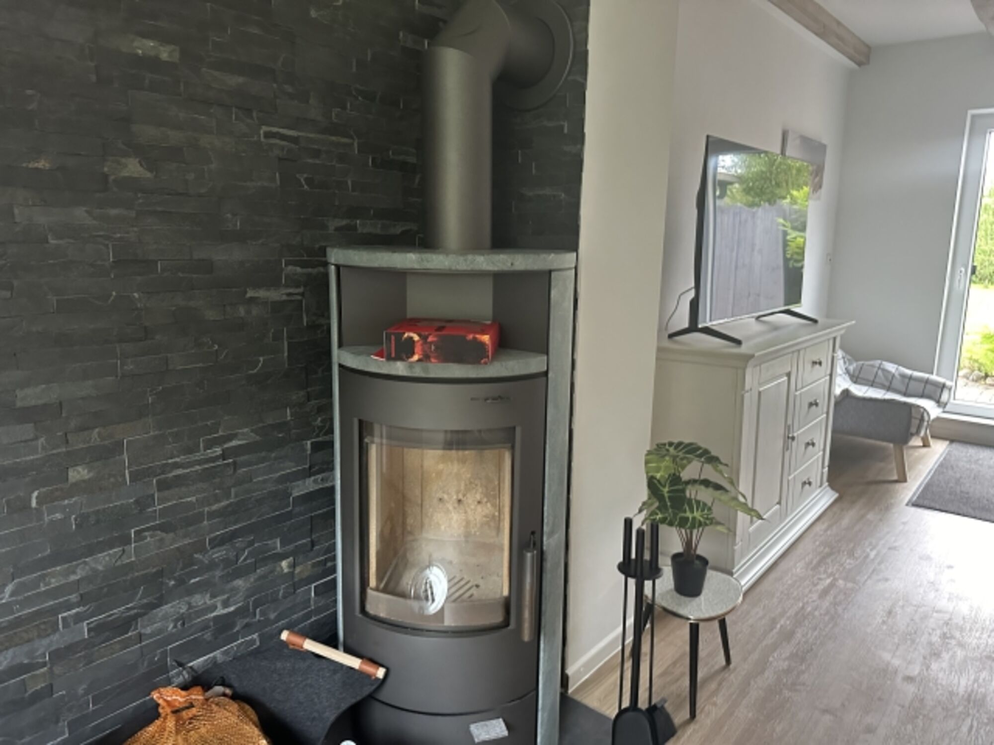 TV, Sky, HDTV Flachbildschirm, Bücher, Kaminofen, Eckcouch, Sessel