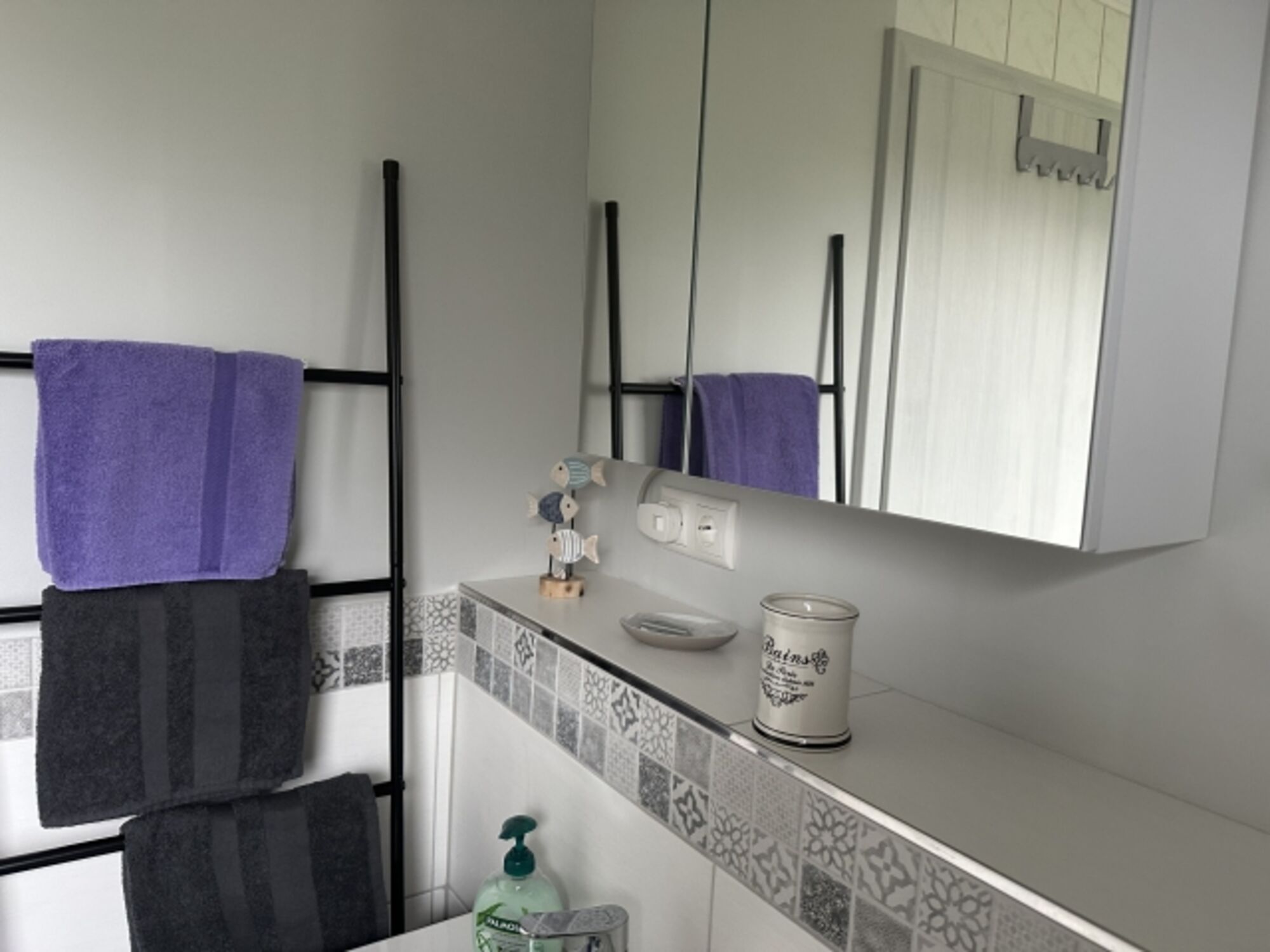Handtücher können optional gebucht werden Waschbecken, Kosmetiktücher, Spiegel, Fenster im Bad