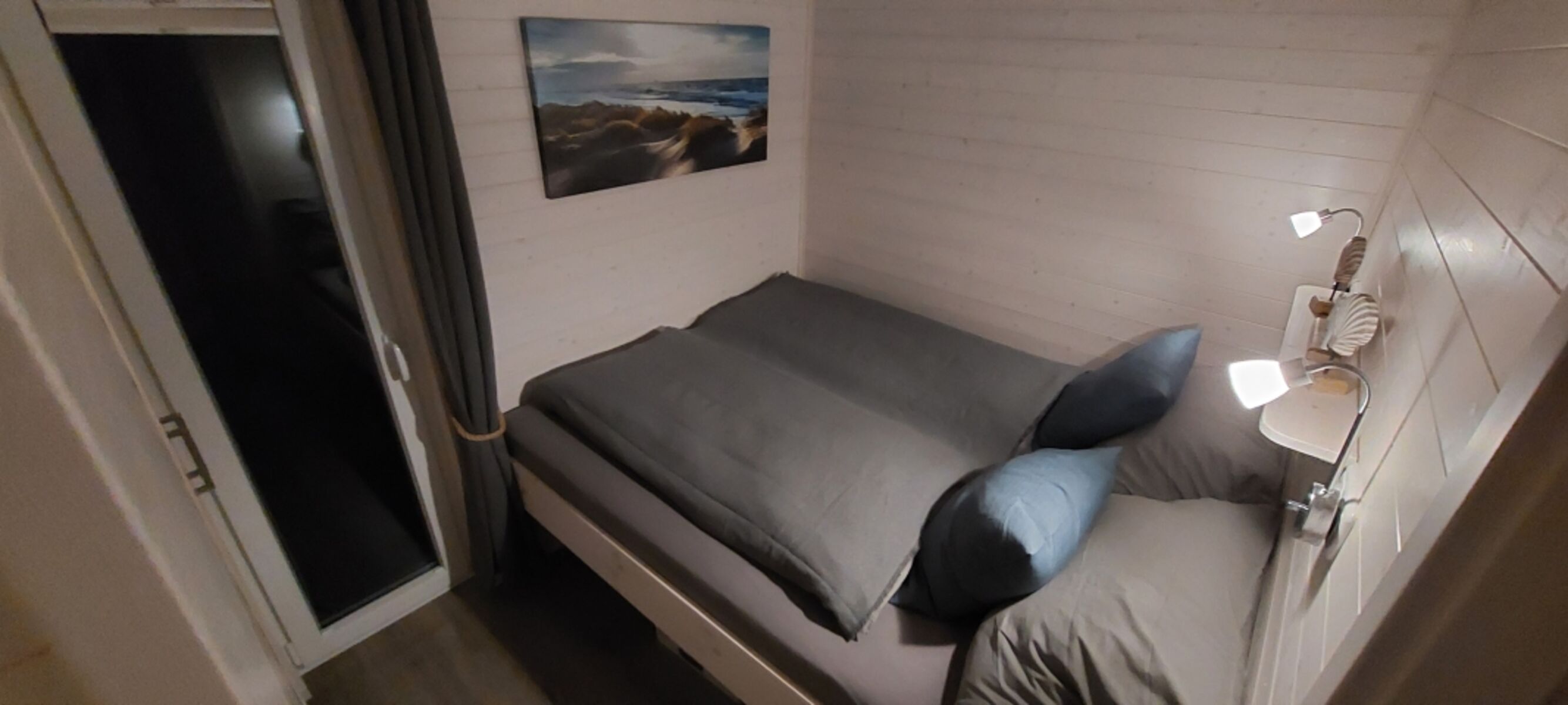 Verdunkelung möglich, Kleiderleiter, Rauchmelder Doppelbett 1,60 x 2,00m, Leselampe am Bett, Fliegengitter