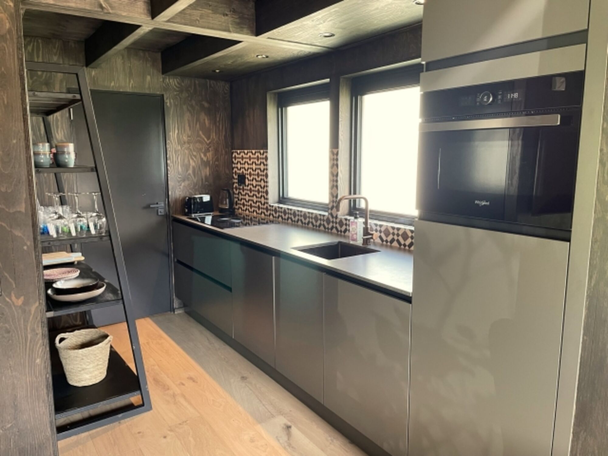 4-Platten Herd, Induktionsherd, Kühlschrank mit Gefrierfach, Nespresso-Automat, Geschirrhandtücher