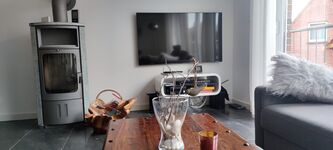 Im Wohnzimmer sorgt ein Kaminofen auch bei kühleren Temperaturen für Behaglichkeit. Zudem gibt es einen großen 55 er Smart-TV ( Netflix und co....), blu-ray-player, Musikanlage sowie natürlich W-LAN.