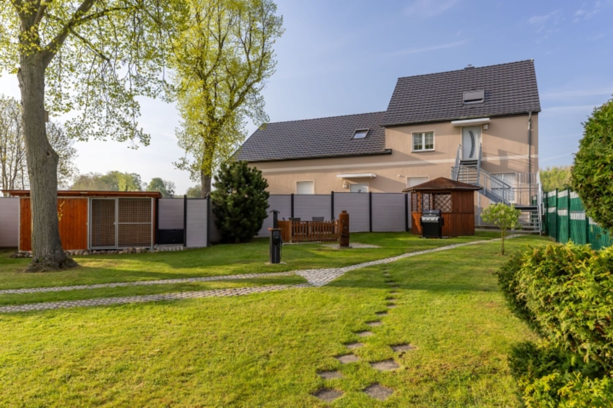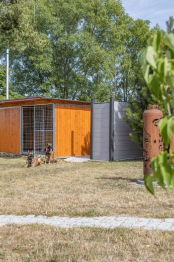 Da wir in der Vergangenheit mit unseren drei Malinois so gut wie keinen Urlaubsplatz gefunden haben, haben wir die FeWo und das Grundstück so eingerichtet wie wir es uns woanders gewünscht hätten. Das Grundstück selbst ist Ausbruchsicher und mit 1,80 m hoch eingezäunt. Es steht, falls benötigt, ein neuer Bromet Zwinger 2x4 m mit isolierter Hütte zur Verfügung.