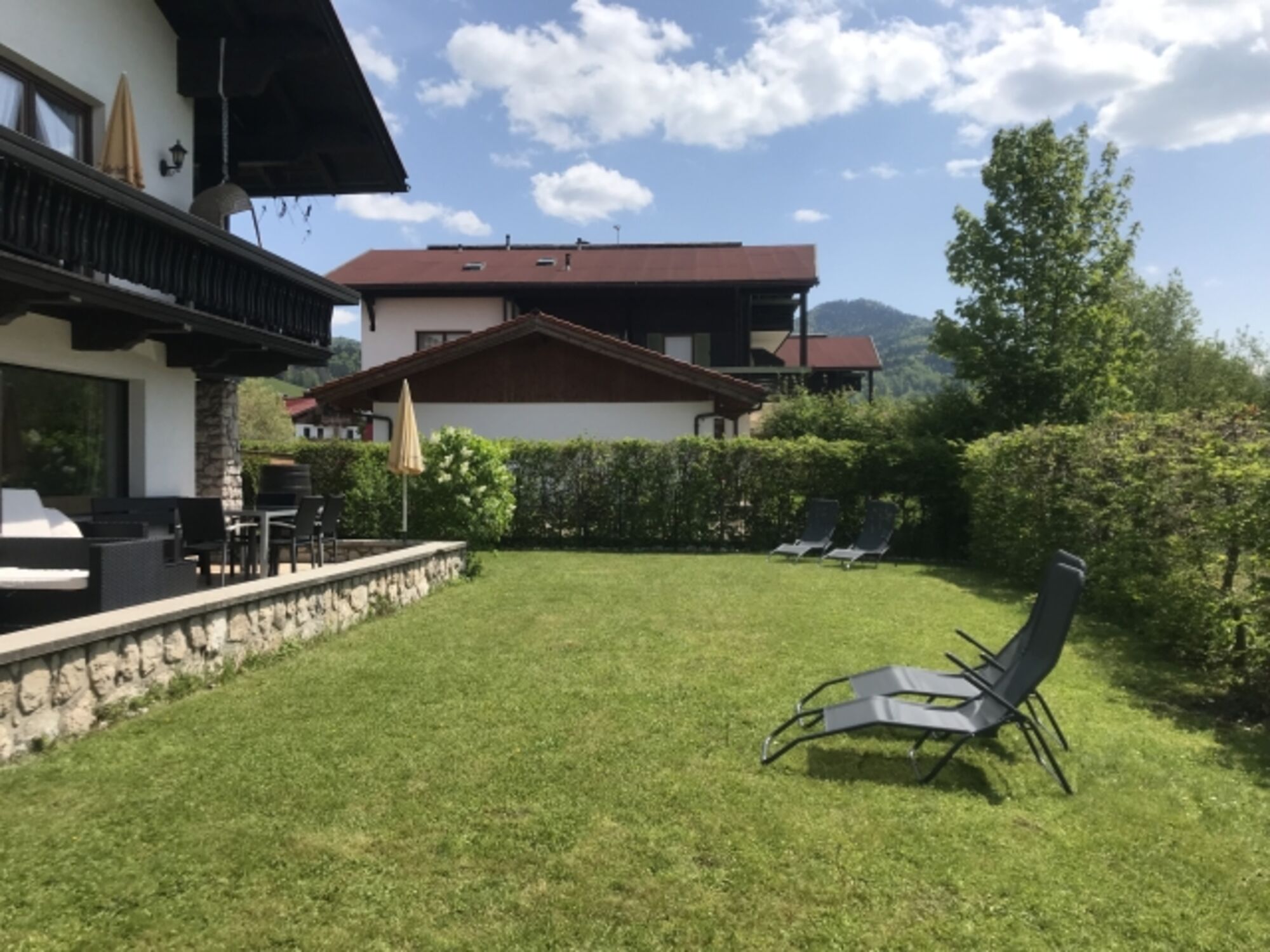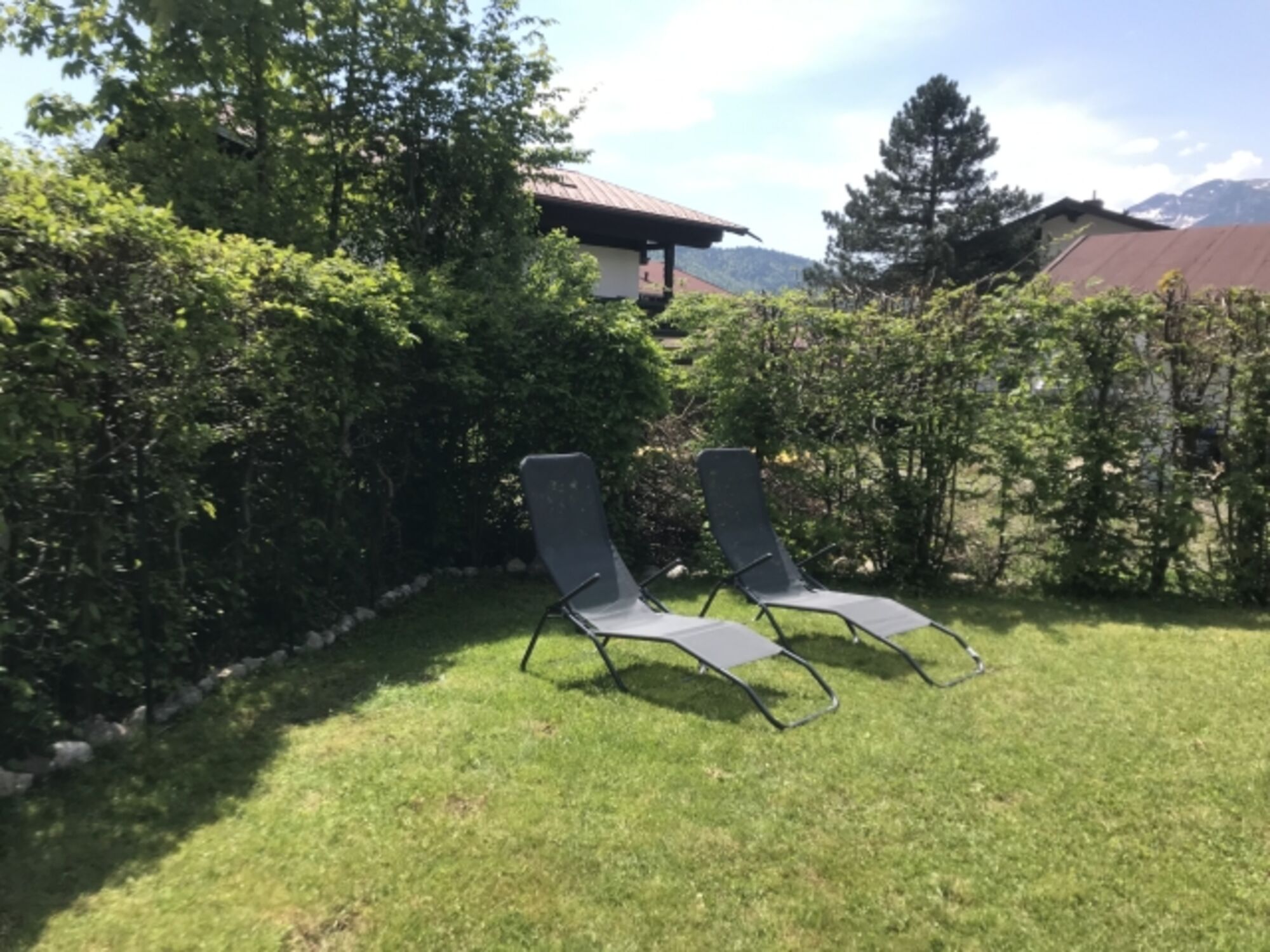 Die Wohnung Lofer liegt etwas versetzt vom Haupthaus und hat einen eigenen vom umzäunten Grundstück separat noch einmal abtrennbaren Garten.