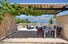 Nach dem Baden können die Gäste auf der großen Terrasse sonnenbaden und sind nicht auf öffentliche Strände angewiesen.