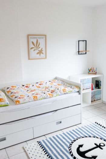 Das Schlafzimmer ist mit einem komfortablen Doppelbett ausgestattet, während sich im zweiten Schlafzimmer ein Kojenbett zum ausziehen befindet. Bettwäsche und Handtücher werden auf Wunsch kostenpflichtig zur Verfügung gestellt.