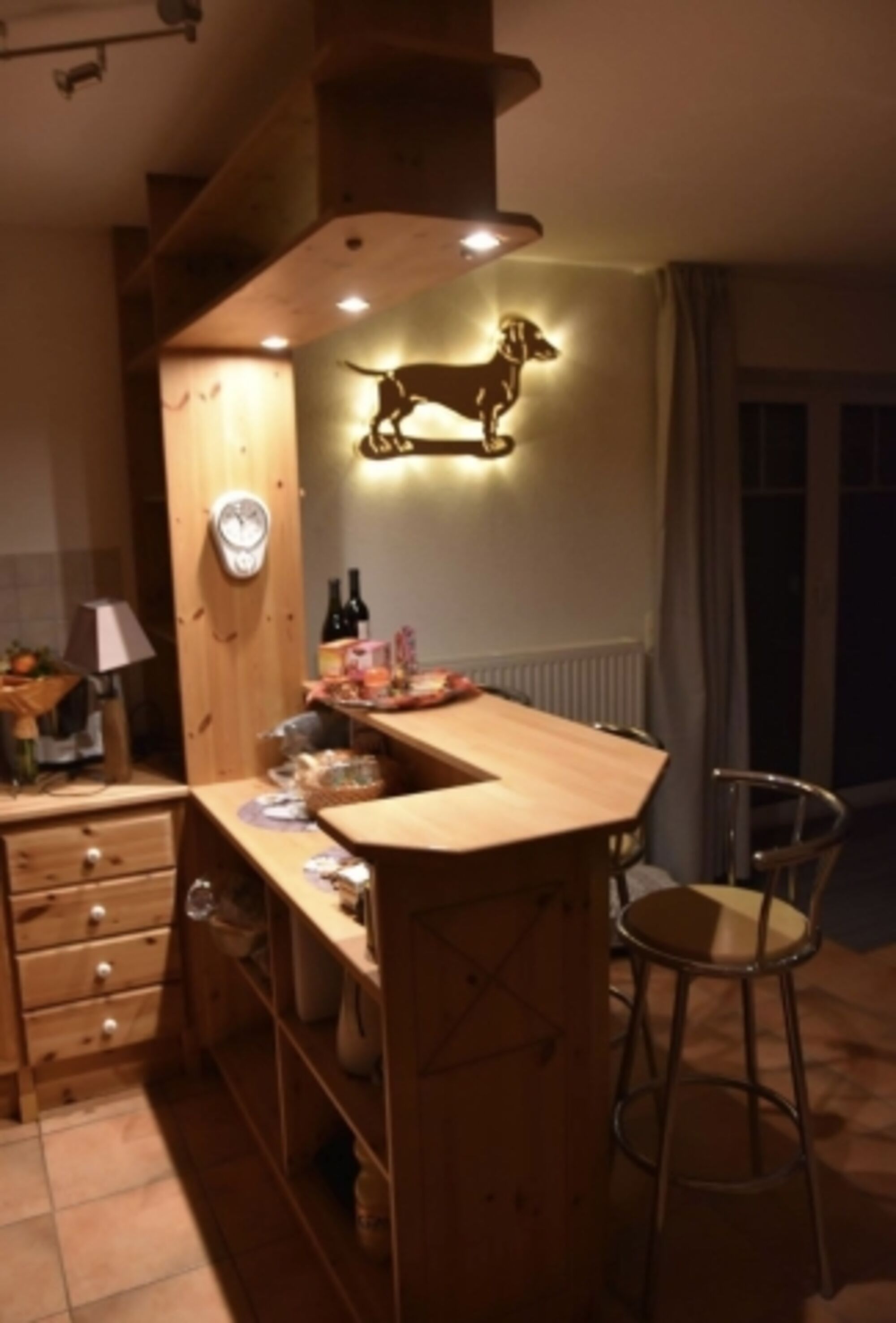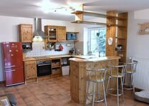 Cerankochfeld, Dunstabzugshaube, Kühlschrank mit Gefrierfach, Gefrierschrank, Kaffeevollautomat, Senseo-Kaffeeautomat, Eierkocher, Küchenmaschine, Korkenzieher / Flaschenöffner, Gewürze (Salz, Pfeffer, Zucker), Öl / Essig, Geschirrhandtücher, Mülltüten, Essplatz in der Küche, TV in der Küche