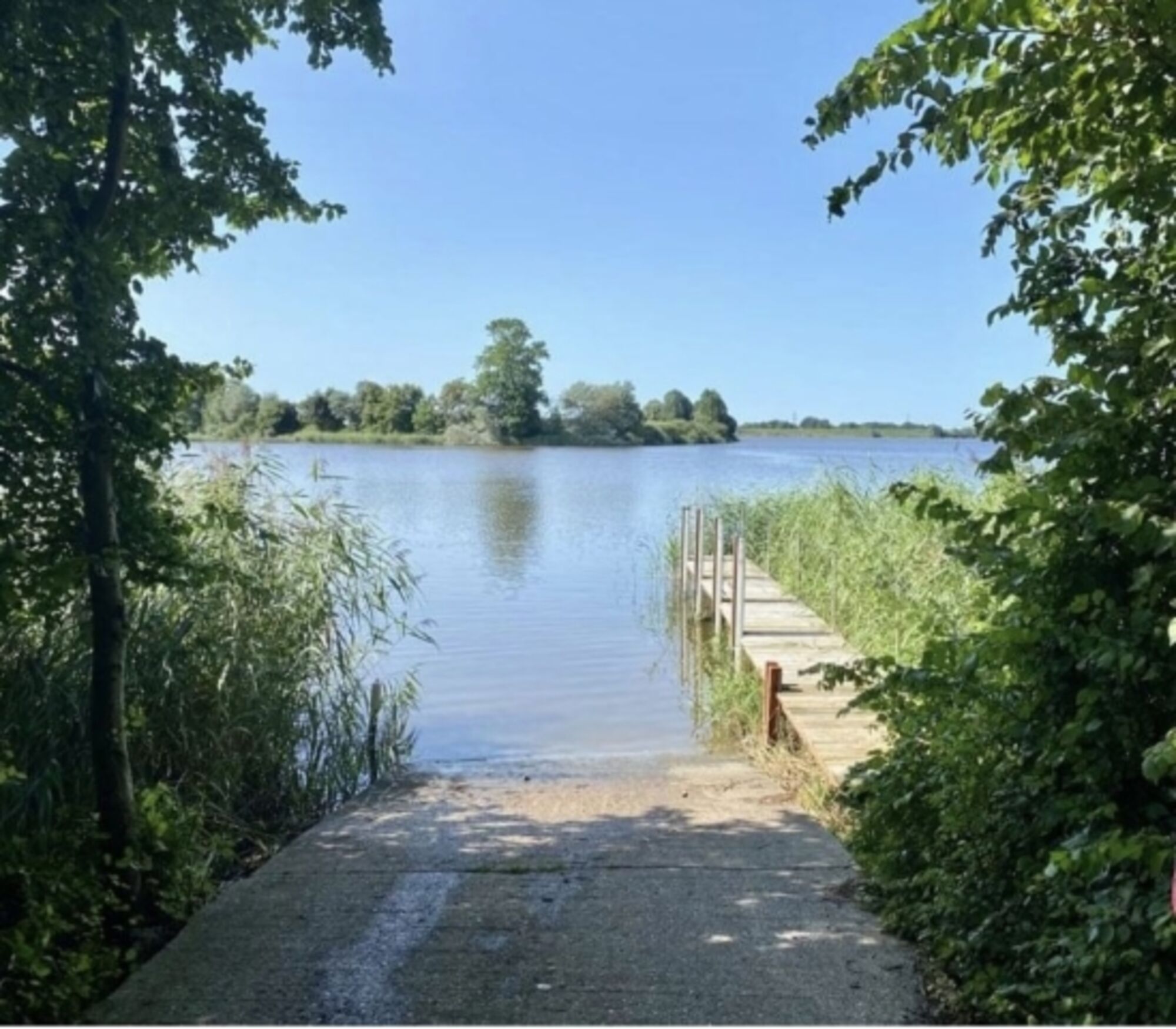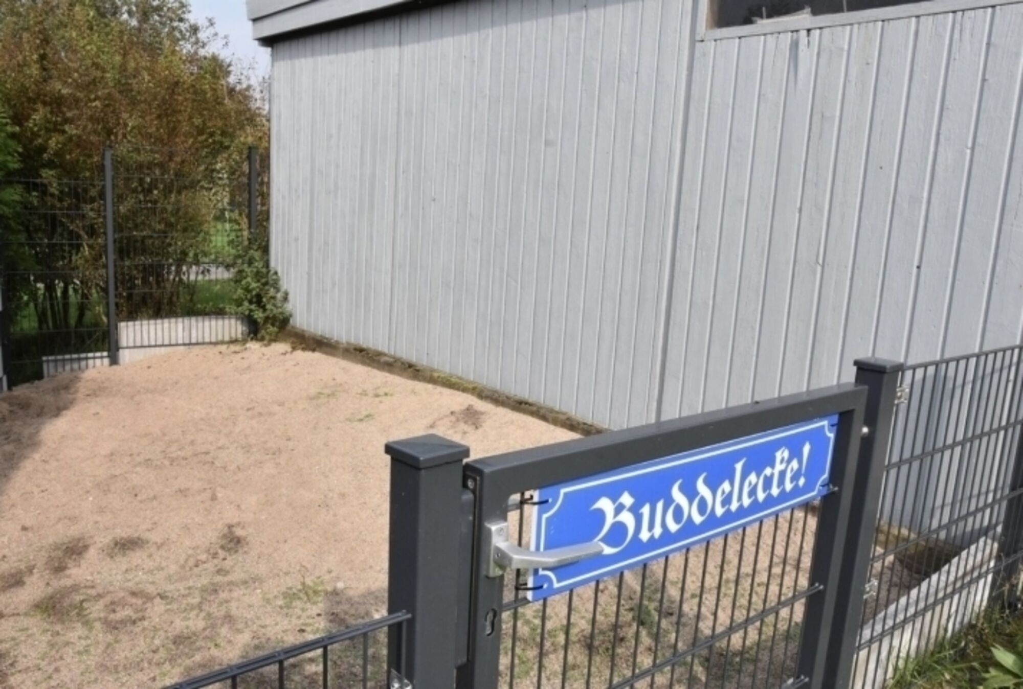 Am Eiderufer im Delje Koog befindet sich eine Badestelle mit Liegewiese mit Sandstrand und ein Badesteg mit Rutsche.