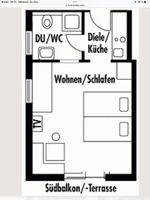 Das Duschbad hat ein Fenster in Richtung Westen . Die kleine Küchenzeile ist 1,50 Meter breit und ist ein richtiges Raumwunder.