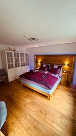 Zwei große Schlafzimmer - jeweils mit Doppelbett 180 cm, eines mit Boxspringbett und großem Kleiderschrank. Auf Anfrage kann ein Zustellbett als drittes Bett arrangiert werden. Ein Babybett ist vorhanden. Badezimmer mit Bad/Dusche/WC, Gäste-WC, Trocken-/Waschraum mit Waschmaschine, Wäscheständer, Staubsauger.