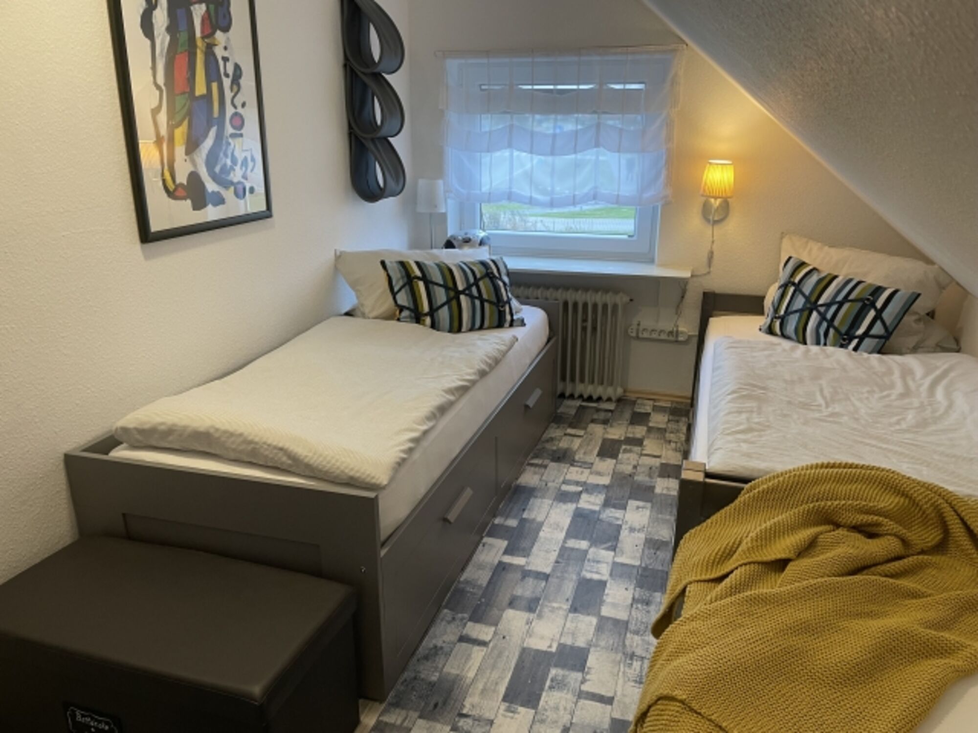 • 1 Schlafzimmer mit drei Einzelbetten (2× 0,9×2 m und 1× 0,8×2 m)