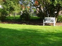 Liegewiese, Gartenmöbel, Kohlegrill, Bänke, Windschutz