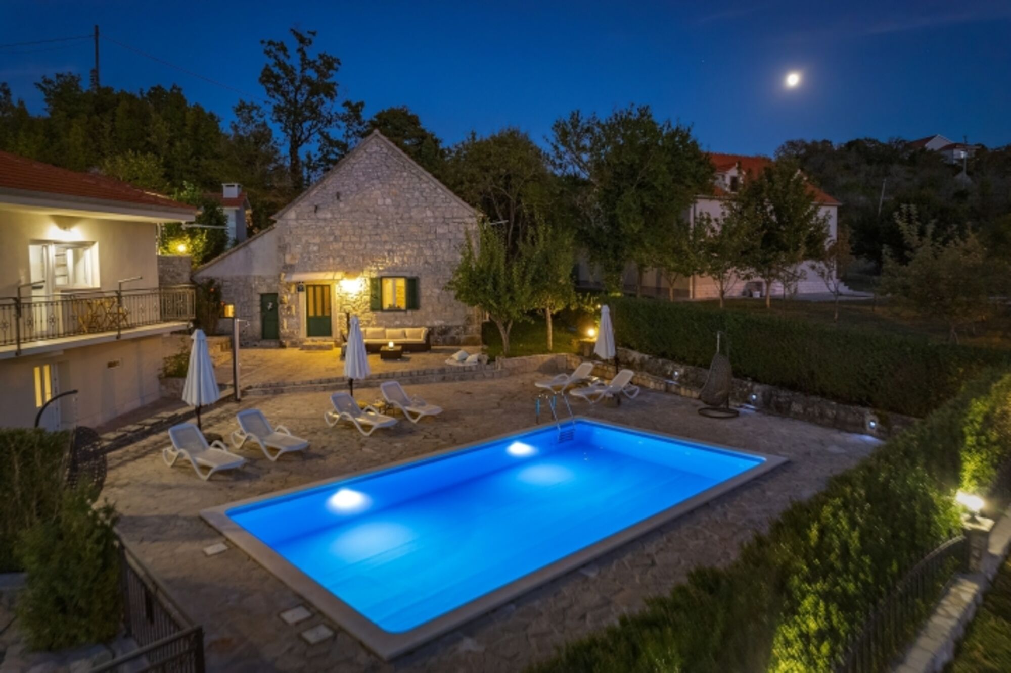 Hacienda Sylvia ist eine sehr komfortable Villa mit 236 m² Wohnfläche auf einem 1.000 m² großen Privatgrundstück mit Blick auf das Tal des Dorfes Studenci. Dieses einzigartige Ferienhaus bietet Ruhe und Frieden abseits der Hektik des Alltags. Diese einzigartige Villa ist in zwei Einheiten unterteilt, die beide exklusiv für Sie angeboten werden. Die Unterkunft ist durchweg voller Charme und Charakter. Es gibt ein atemberaubendes, 100 Jahre alten Steinhaus mit freiliegenden Balken, das kürzlich renoviert wurde. Zusammen mit der modernen Inneneinrichtung des Haupthauses, ist diese Unterkunft ein außergewöhnliches und einzigartiges Ferienhaus.