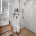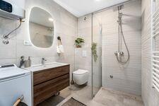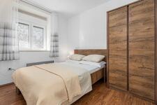 Ein Schlafzimmer Nr. 3 (6,5 m²) mit einem Doppelbett 160 cm x 200 cm. Ein separates Familienbadezimmer (6,5 m²) mit Dusche und Waschmaschine. Es gibt auch ein Bügeleisen mit Bügelzubehör.