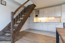 Die offene Küche ist mit Annehmlichkeiten wie einem Geschirrspüler und einer Mikrowelle ausgestattet. Die Essecke befindet sich im Wohnbereich, der dazu einlädt, gemeinsame Stunden mit Freunden und Familie zu verbringen. Selbstverständlich steht WLAN zur Verfügung.