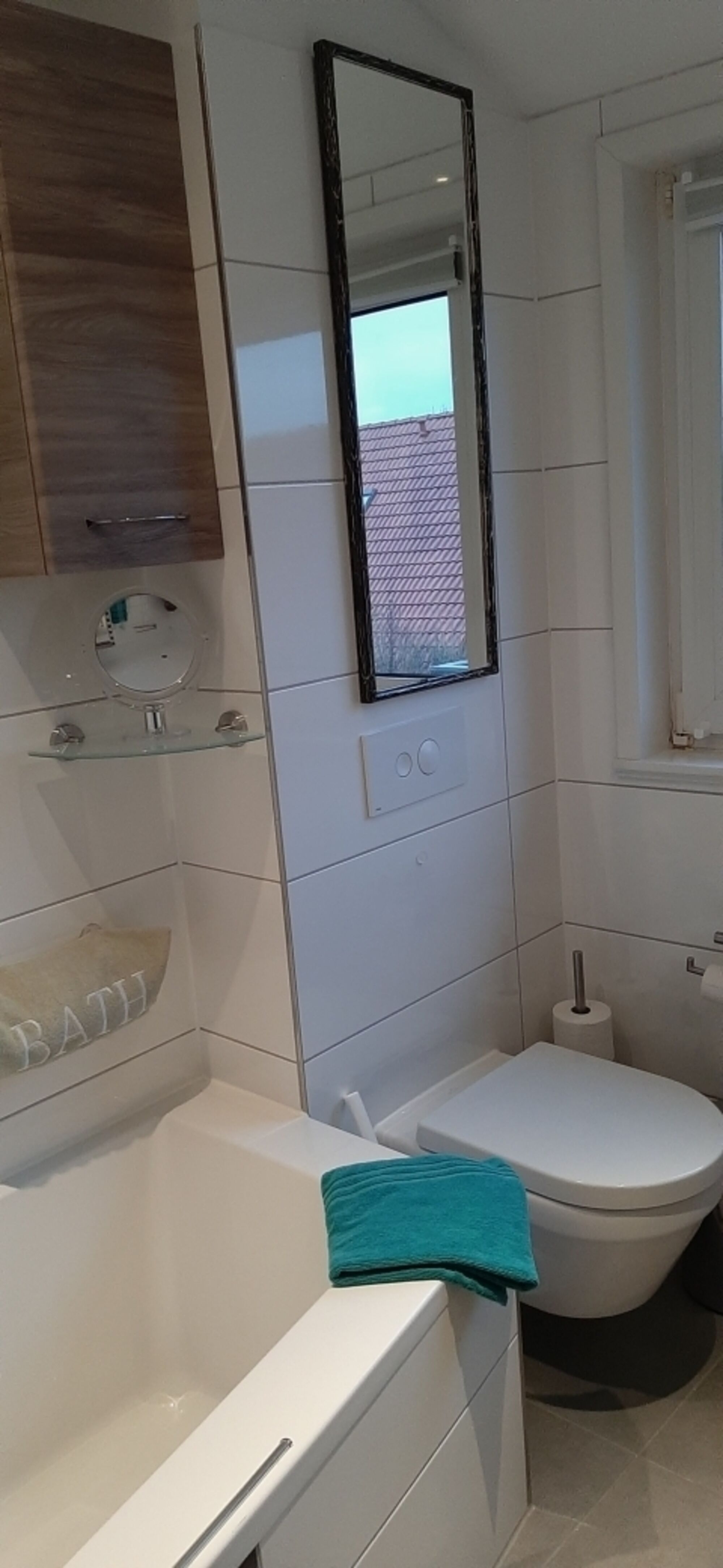 Bad Badewanne mit Dusche, WC,Fön,Kosmetikspiegel, Waschtisch