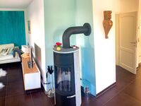 Der Kaminofen im großzügigen Wohn- und Esszimmer, das sich im Erdgeschoss des Hauses befindet, ist ein besonderer Trumpf für die romantischen Momente oder wenn man nach einem erfrischenden Strandspaziergang im Herbst und Winter wieder zurück ins Ferienhaus kommt. Gleich daneben bietet ein großer Esstisch aus Echtholz Platz für die ganze Familie. Wunderbar bequeme Couchmöbel laden vor dem großformatigen Flachbild-TV zum Entspannen ein. Hier lässt es sich ganz wunderbar schmökern, ein Gläschen Wein genießen oder im Internet surfen. W-LAN ist selbstverständlich kostenfrei verfügbar.