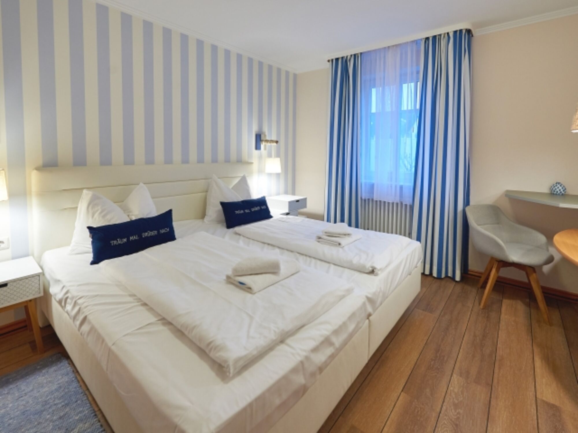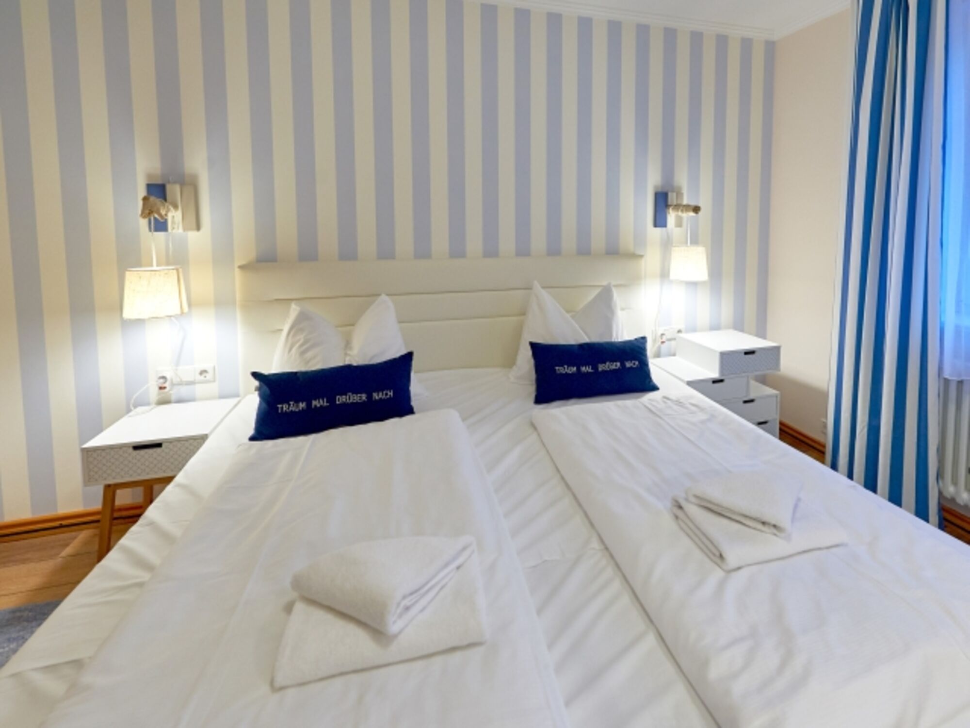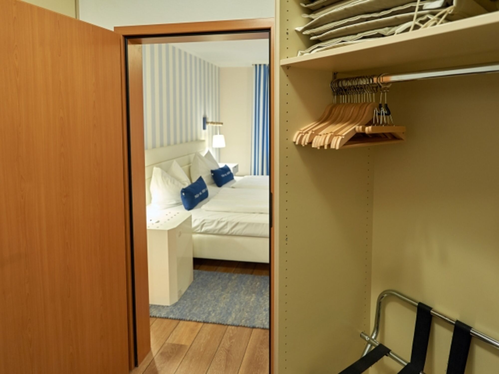 Entspannte Träume verspricht das Schlafzimmer mit seinem bequemen Doppelbett (180 x 200 cm), Fliegengitter am Fenster und Verdunklungsvorhängen. Als besonderer Clou entpuppt sich der begehbare Kleiderschrank. Er bietet genügend Stauraum für Ihre Garderobe und Ihr Reisegepäck sowie einen Zimmersafe.[nbsp]