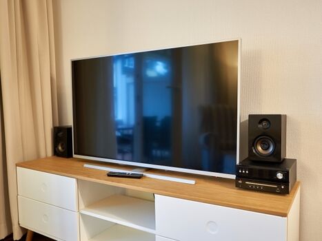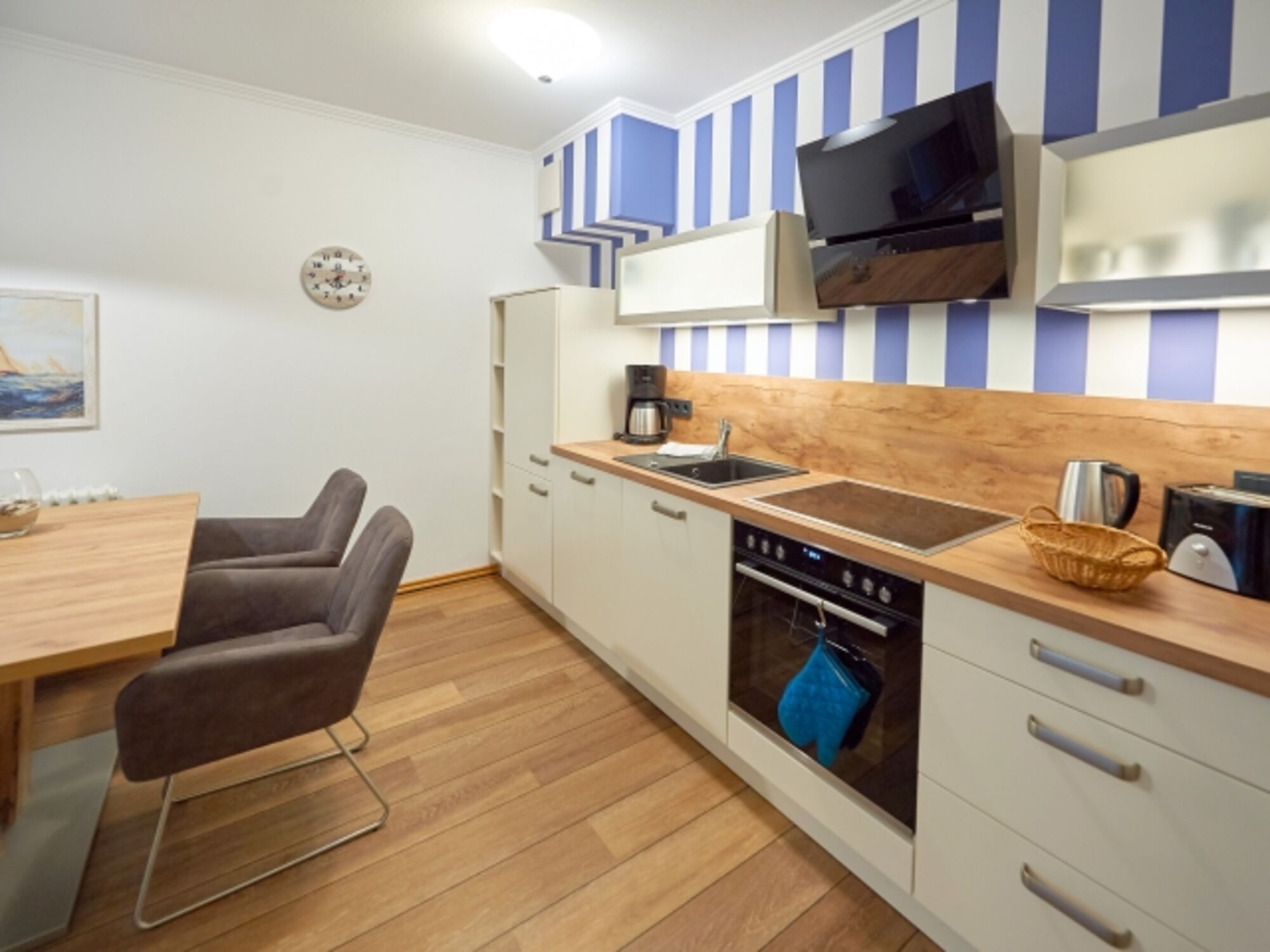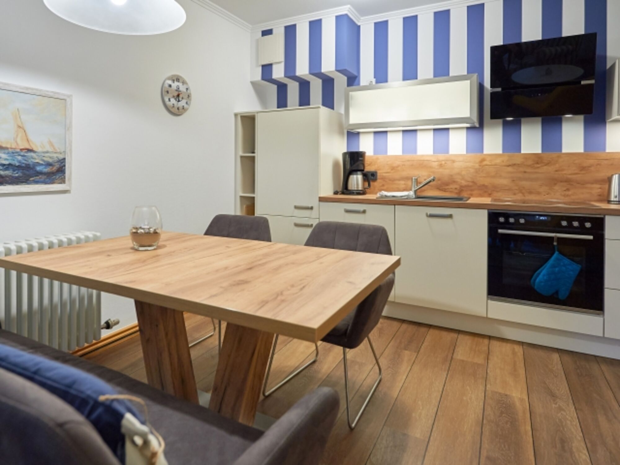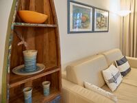 Ihr Urlaubsdomizil empfängt Sie ganz zünftig maritim mit vielen hübschen Details, die die Eigentümer sorgsam ausgesucht haben. Das kombinierte Wohn- und Esszimmer kommt in angenehm warmen Farben daher und lässt keinen Komfort vermissen. Ein großer SMART-TV nebst DVD-Player und kostenfreiem W-LAN sorgen für Unterhaltung, während man es sich auf der gemütlichen Couch oder dem Relaxsessel gut gehen lässt. [nbsp]Die Couch lässt sich bei Bedarf übrigens in eine Schlafgelegenheit für zwei Personen verwandeln.