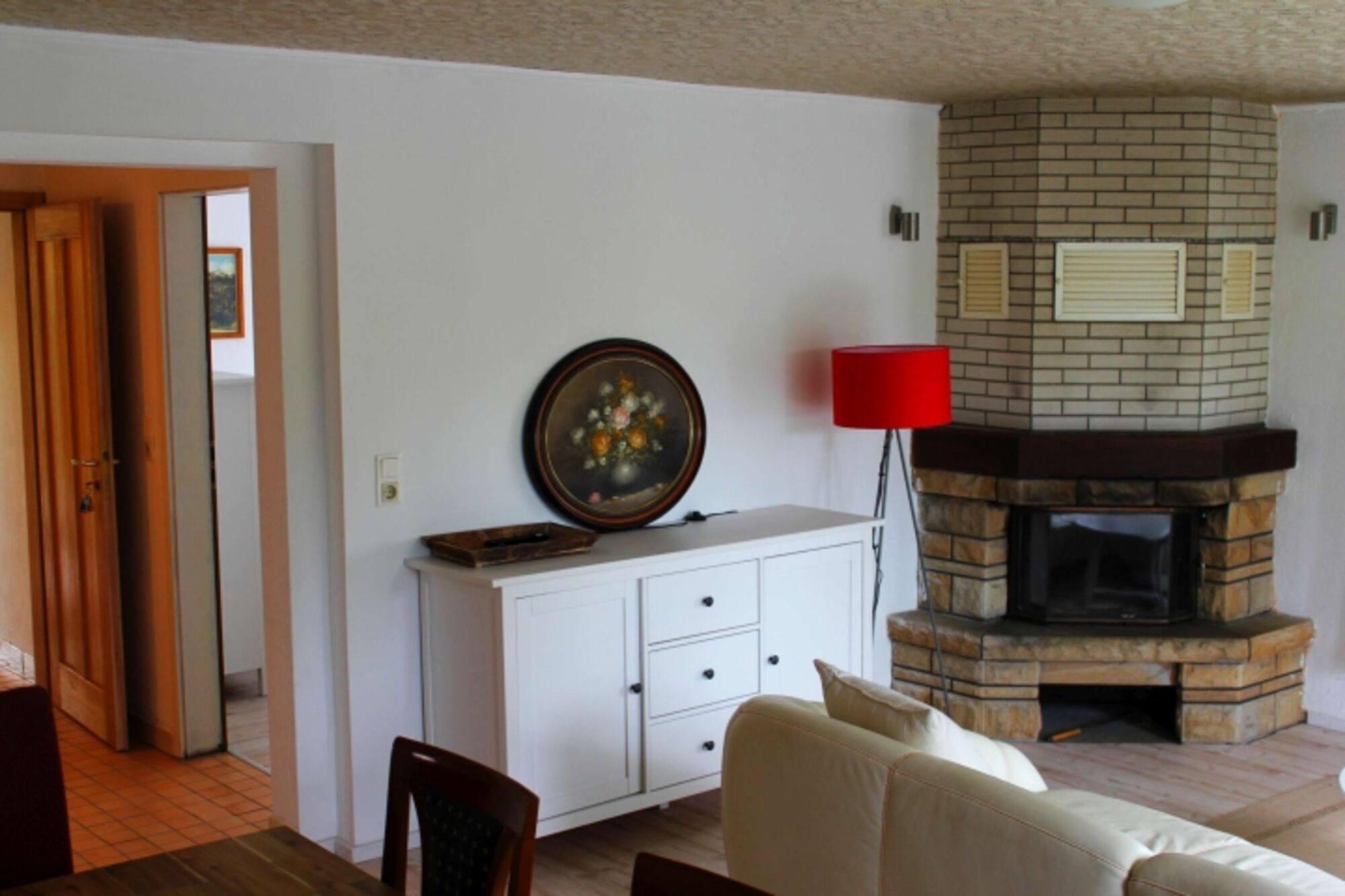 TV-Sat, SMART-TV, HDTV Flachbildschirm, Bücher, Kaminofen, Eckcouch, 3er-Sofa