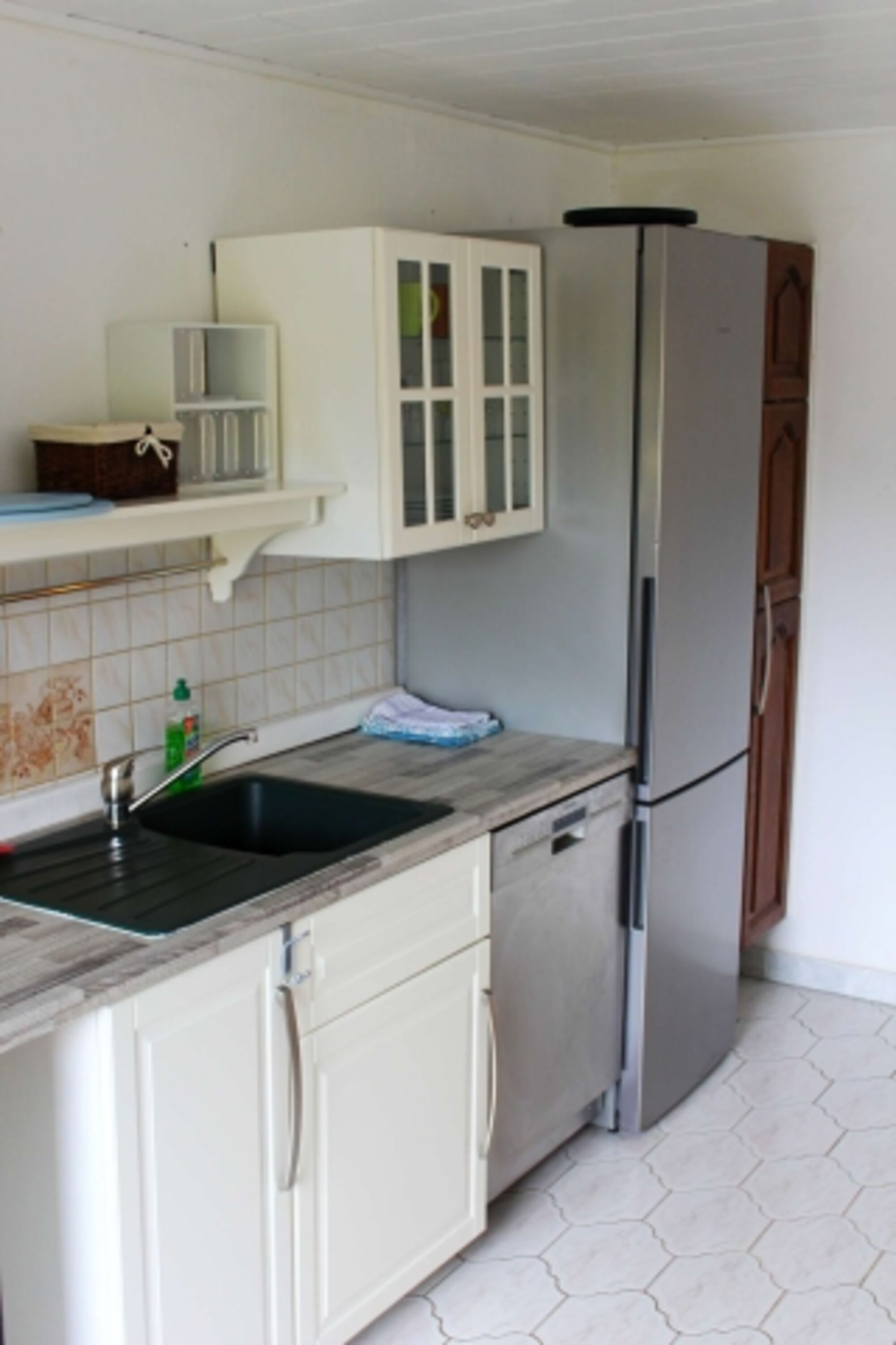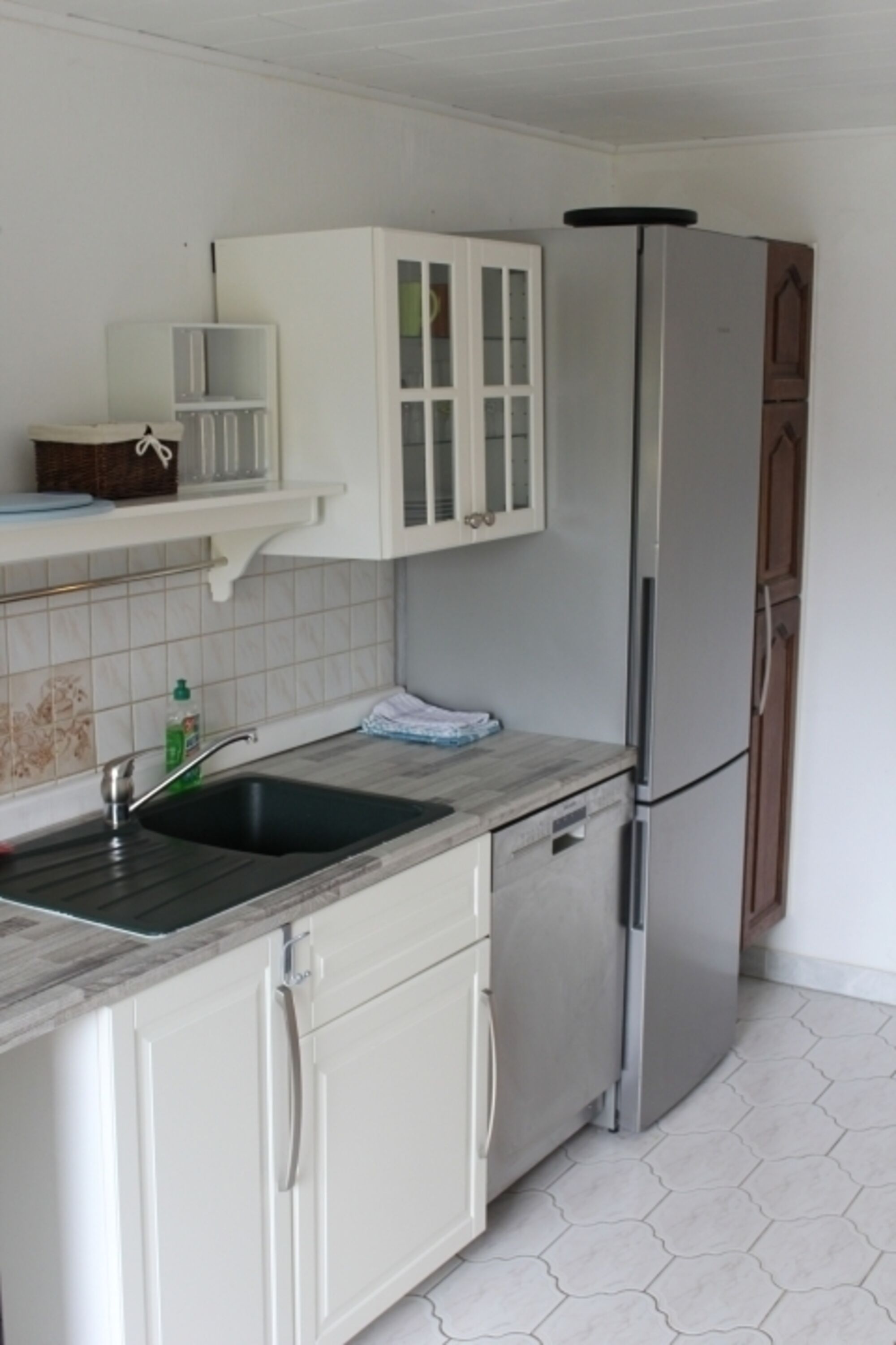 4-Platten Herd, Cerankochfeld, Dunstabzugshaube, Kühlschrank mit Gefrierfach, Mixer, Korkenzieher / Flaschenöffner, Geschirrhandtücher, Mülltüten