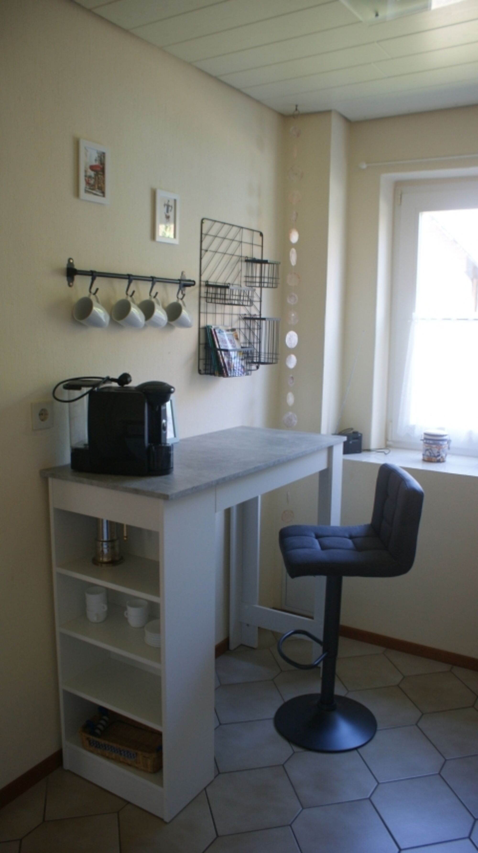 Kaffee-Stehtheke mit Barhocker, Tassimo-Maschine und Espressokocher