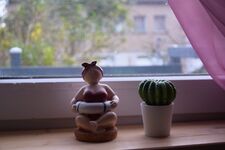 Waschbecken, Spiegel, Fenster im Bad