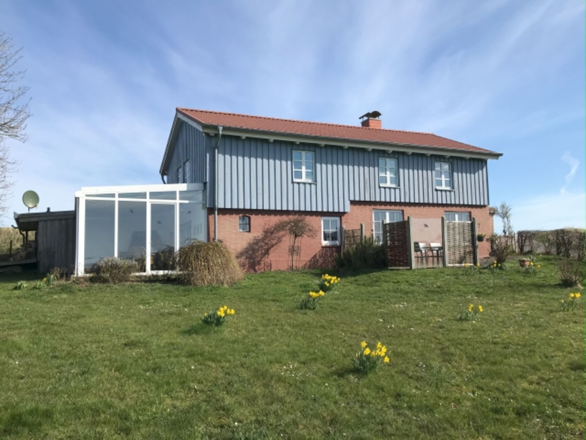 Die angrenzende 2. Haushälfte wird ausschließlich als Feriendomizil von den Eigentümern selbst genutzt, so daß unsere Gäste den komplett eingezäunten Garten meist für sich allein haben.
