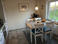 Vom großen hellen Wohnzimmer können Sie Ihren Blick über die typische Marschlandschaft Eiderstedts streifen lassen. Ein Kaminofen sorgt dort für Behaglichkeit auch an kühleren Tagen. Die Küche bietet eine gut ausgestattete EBK sowie eine Essgruppe für 4 Personen.