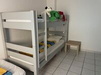 Das Schlafzimmer 3 hat ein Etagenbett (2x 90x200) und ein zusätzliches Einzelbett (90x200) Einzelbett, Kommode, Fliegengitter