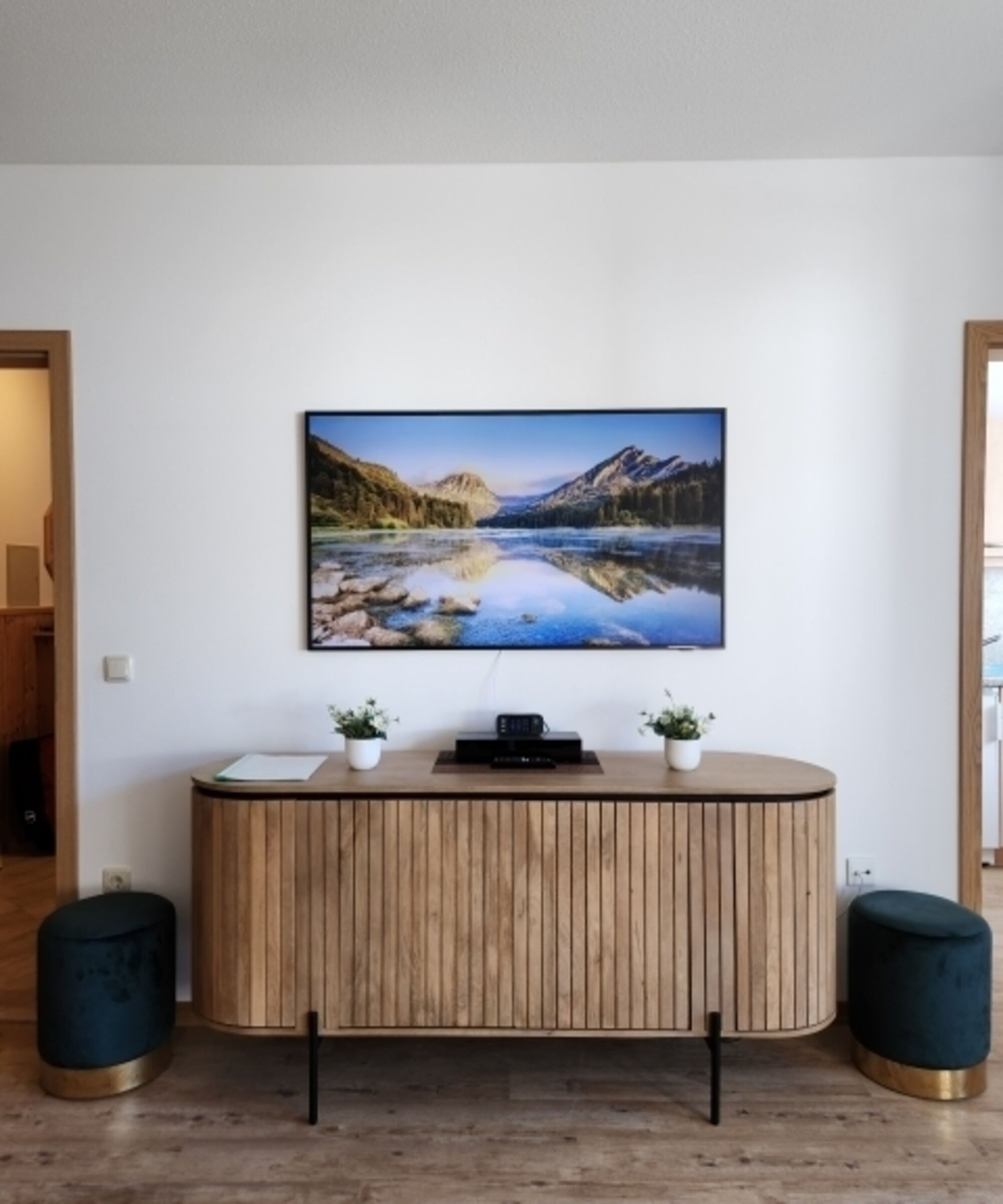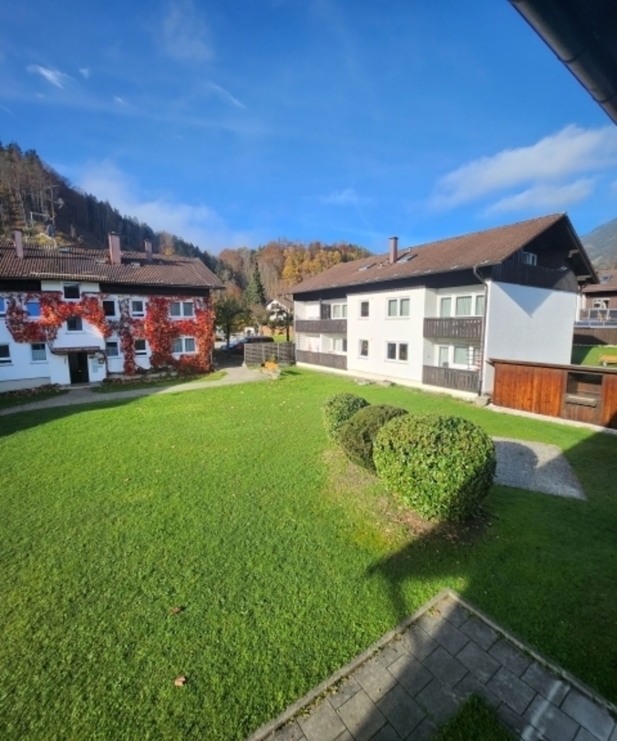 Genießen Sie die atemberaubende Aussicht auf die verschneiten Berge und das malerische Landschaftsbild direkt von Ihrem Balkon aus. Das Gebäude, in dem sich die Wohnung befindet, fügt sich harmonisch in die natürliche Umgebung ein und bietet Ihnen das Gefühl von Ruhe und Gelassenheit.