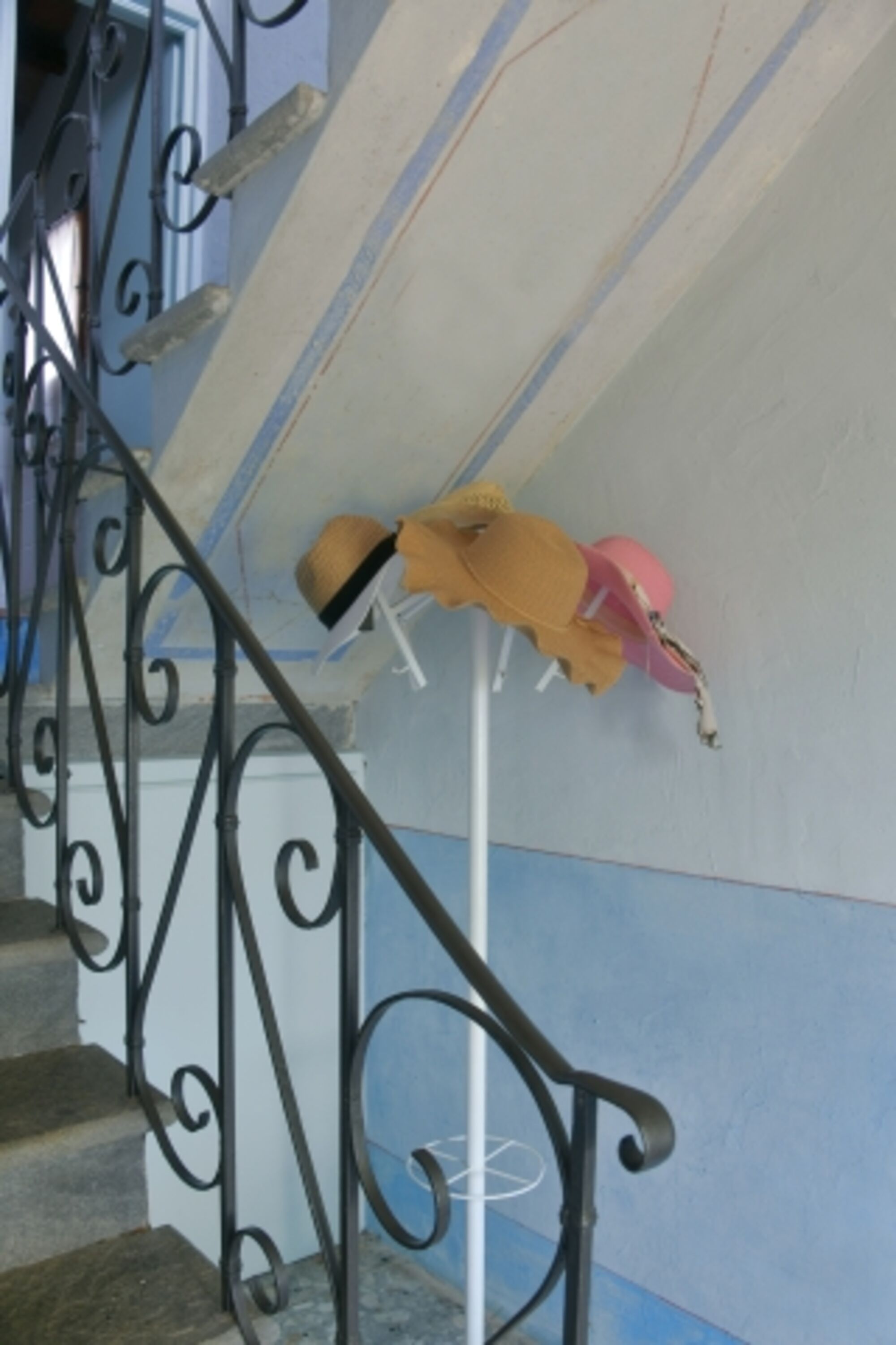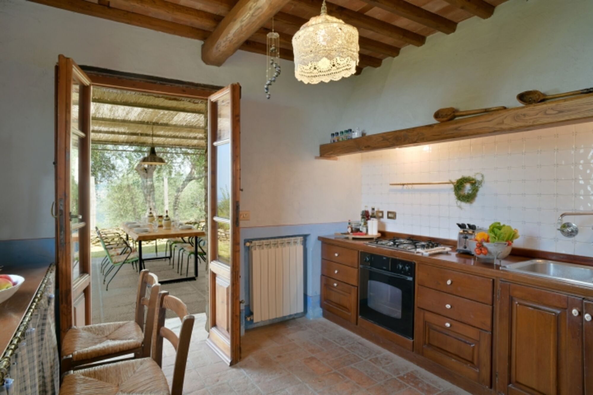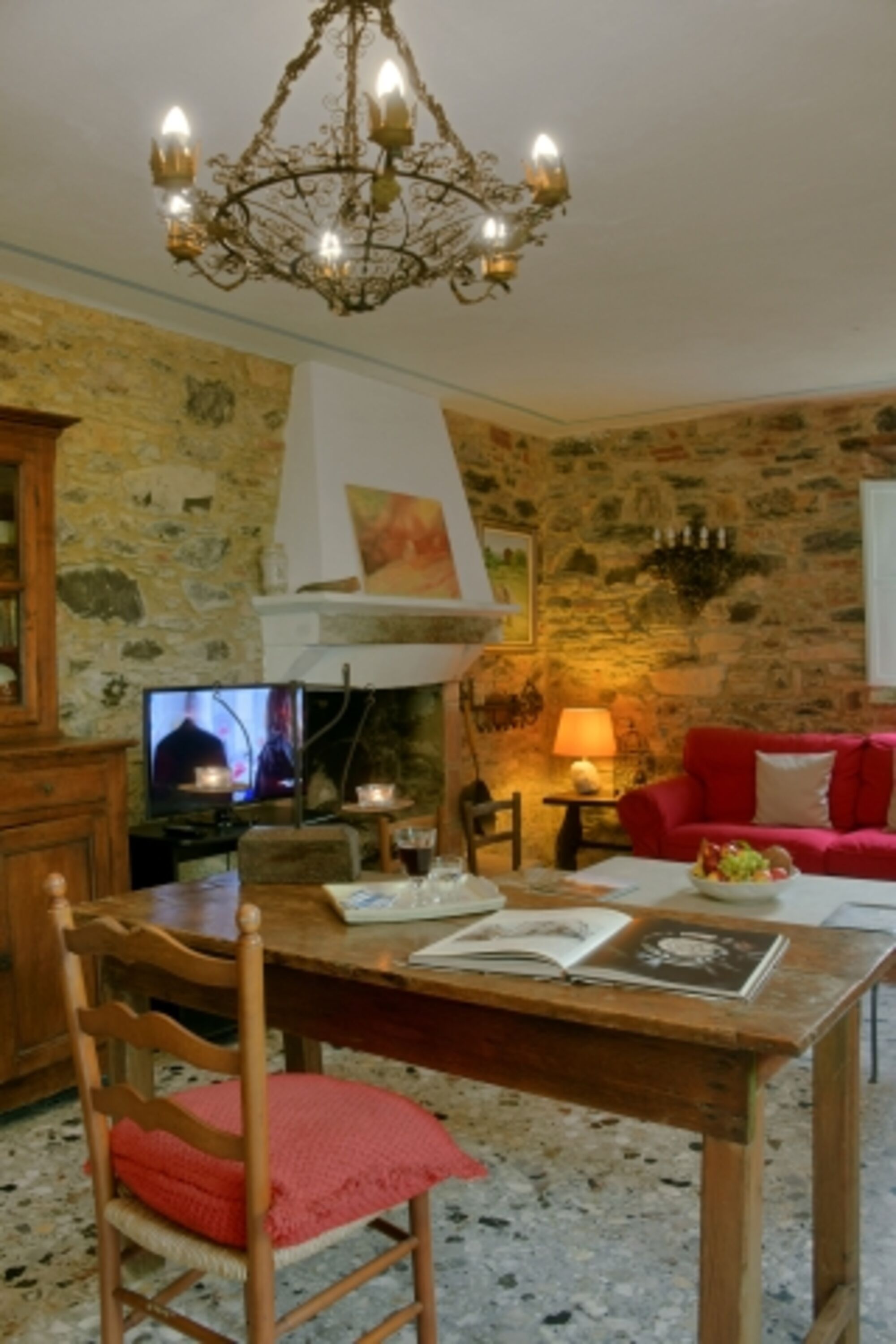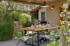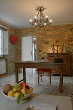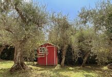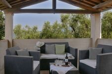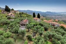Im Erdgeschoss befindet sich eine gut ausgestattete Küche mit Ausgang zu einer einer Terrasse mit Esstisch und Stühlen, die zu einem gemütlichen Beisammensein einlädt. Esszimmer mit Kamin und Badezimmer mit Dusche, Wohnzimmer mit Couch und Sesseln und offenem Kamin.Im Zwischengeschoss befindet sich ein Badezimmer (WC und Waschbecken) ersten Stock befinden sich 3 Schlafzimmer mit Doppelbett, eines davon ist ein Durchgangszimmer und eines hat eine Panoramaterrasse mit Meerblick. Fliegengitter an den Fenstern. Um das Haus herum befinden sich Olivenhaine und Gärten. Hunde können im Garten frei herumlaufen. Schöne Wege rings um das Haus zum Spazieren gehen.