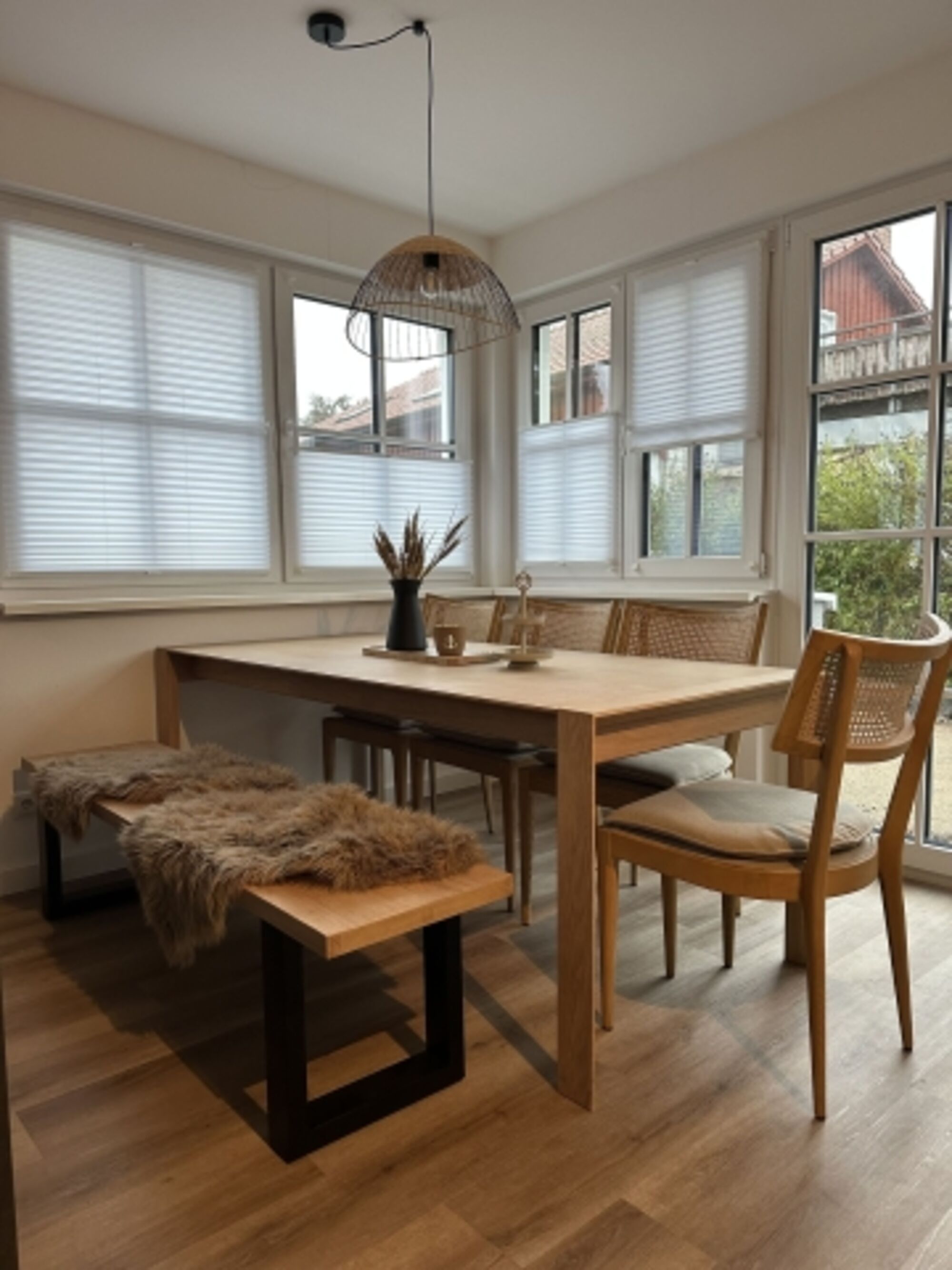 Beginnen Sie den Tag mit einem ausgiebigen Frühstück am großen Esstisch oder auf der Terrasse bei ersten Sonnenstrahlen.
